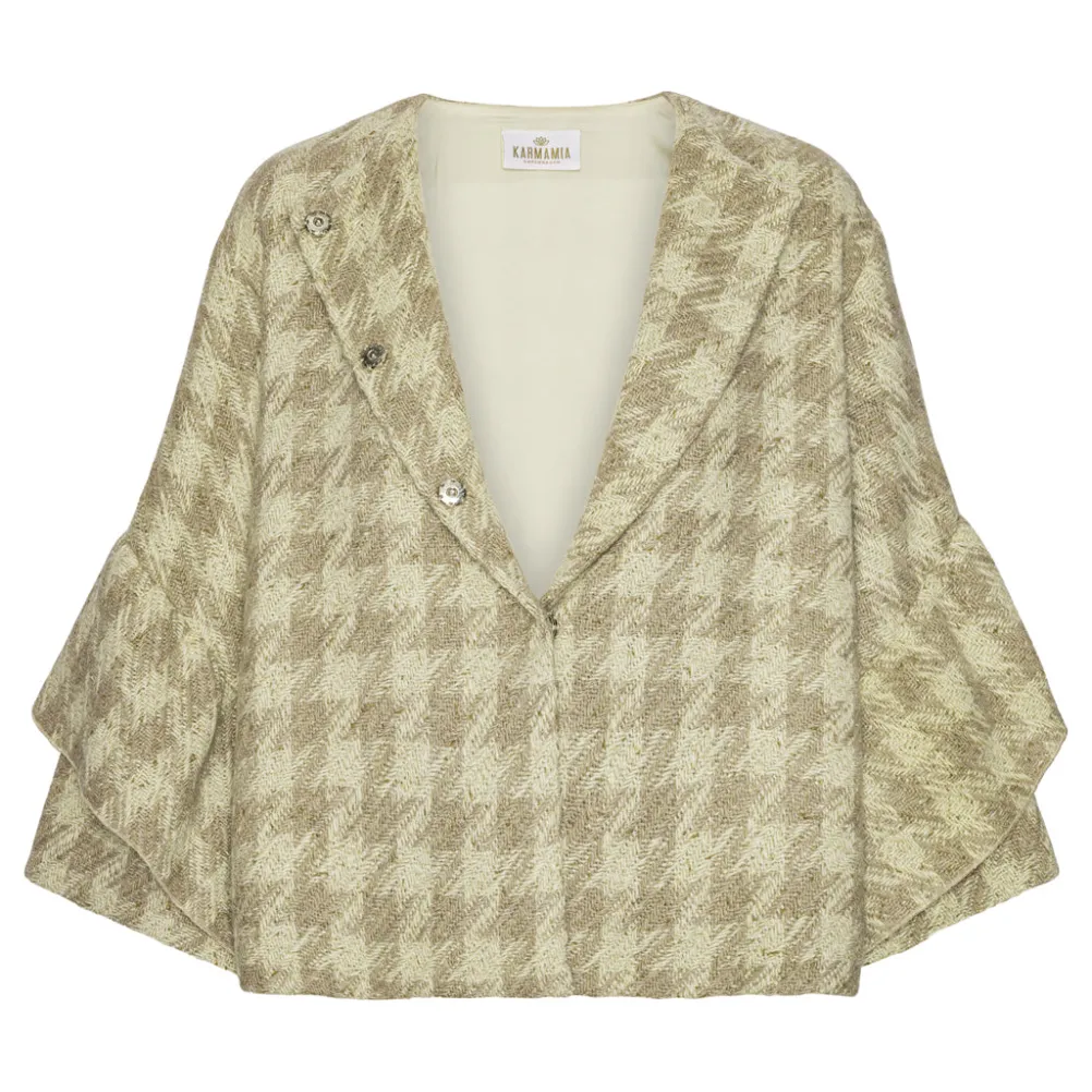 Elegant populær kort jakke fra Karmamia med peplum ærmer og knapluking. Med smukt satinfoer. Limited edition. One Size.