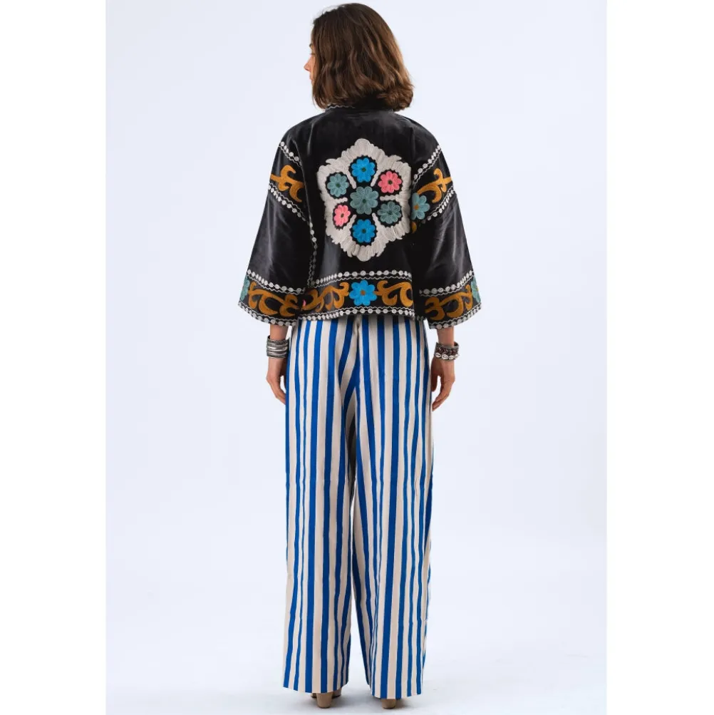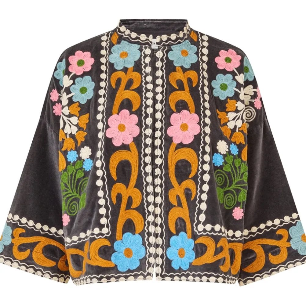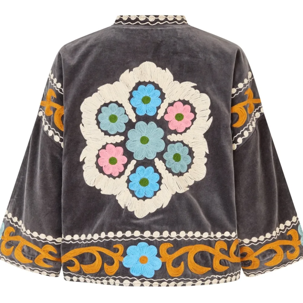 Super smuk boheme-inspireret jakke fra Lollys Laundry med fine detaljer. Jakken er lavet i en blød velour med flot blomstermønster.