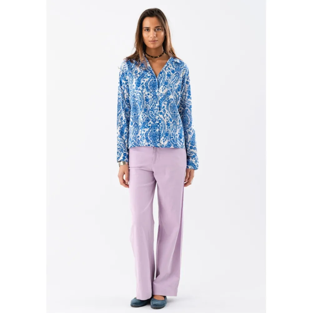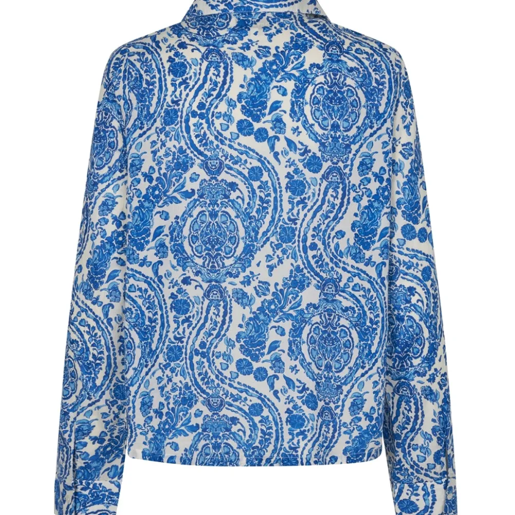 Flot mønstret skjorte fra Lollys Laundry i flot blå farve. Med klassisk krave, lille v-udskæring og knaplukning.