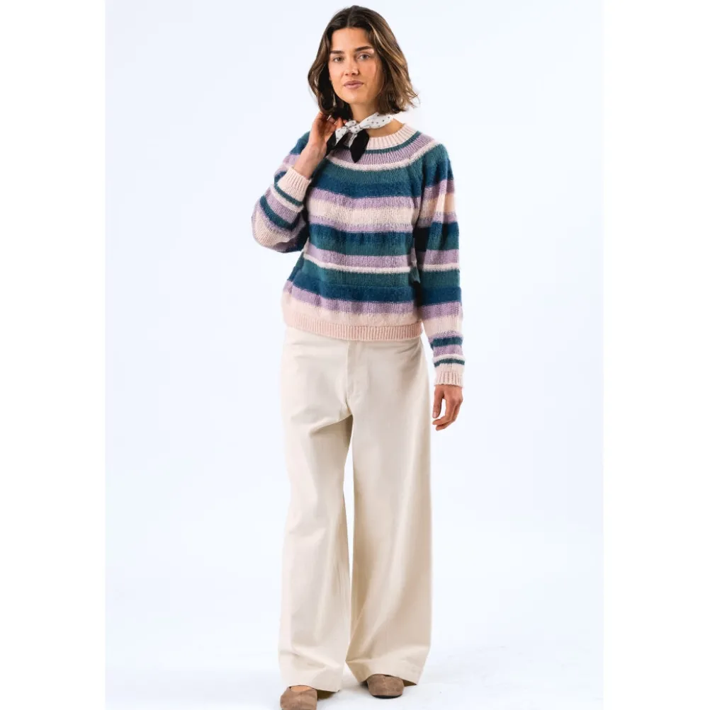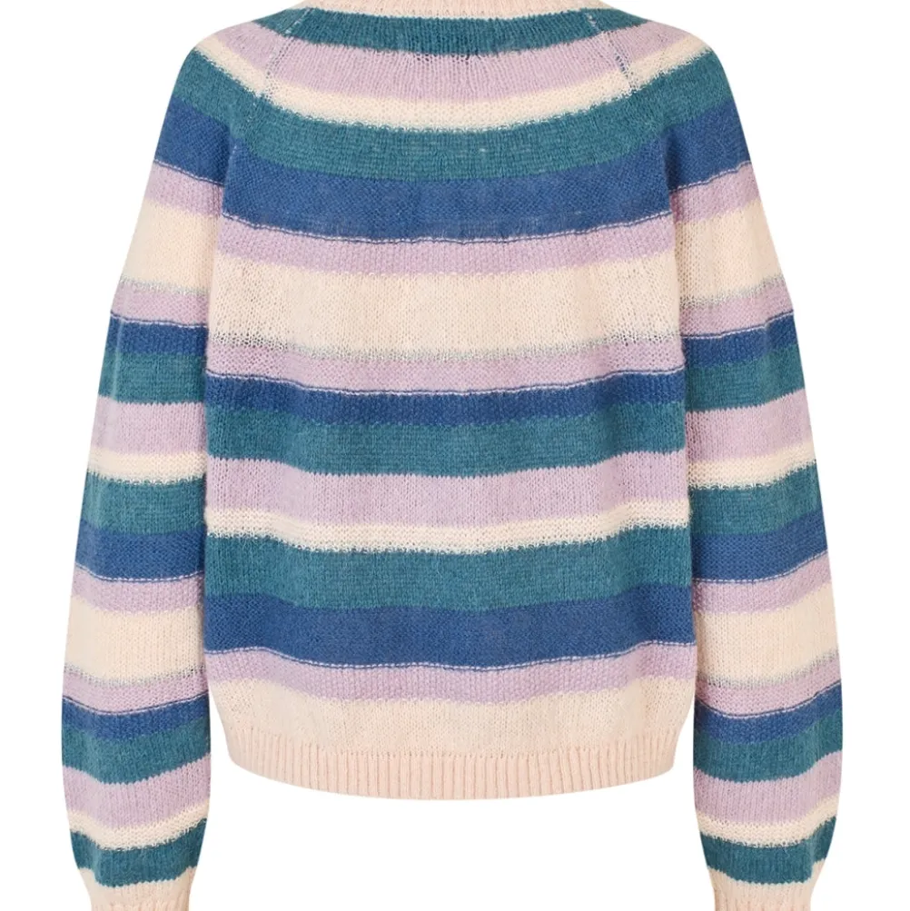 Skøn stribet strik fra Lollys Laundry i flotte farver. Med ribkanter. Løs pasform.