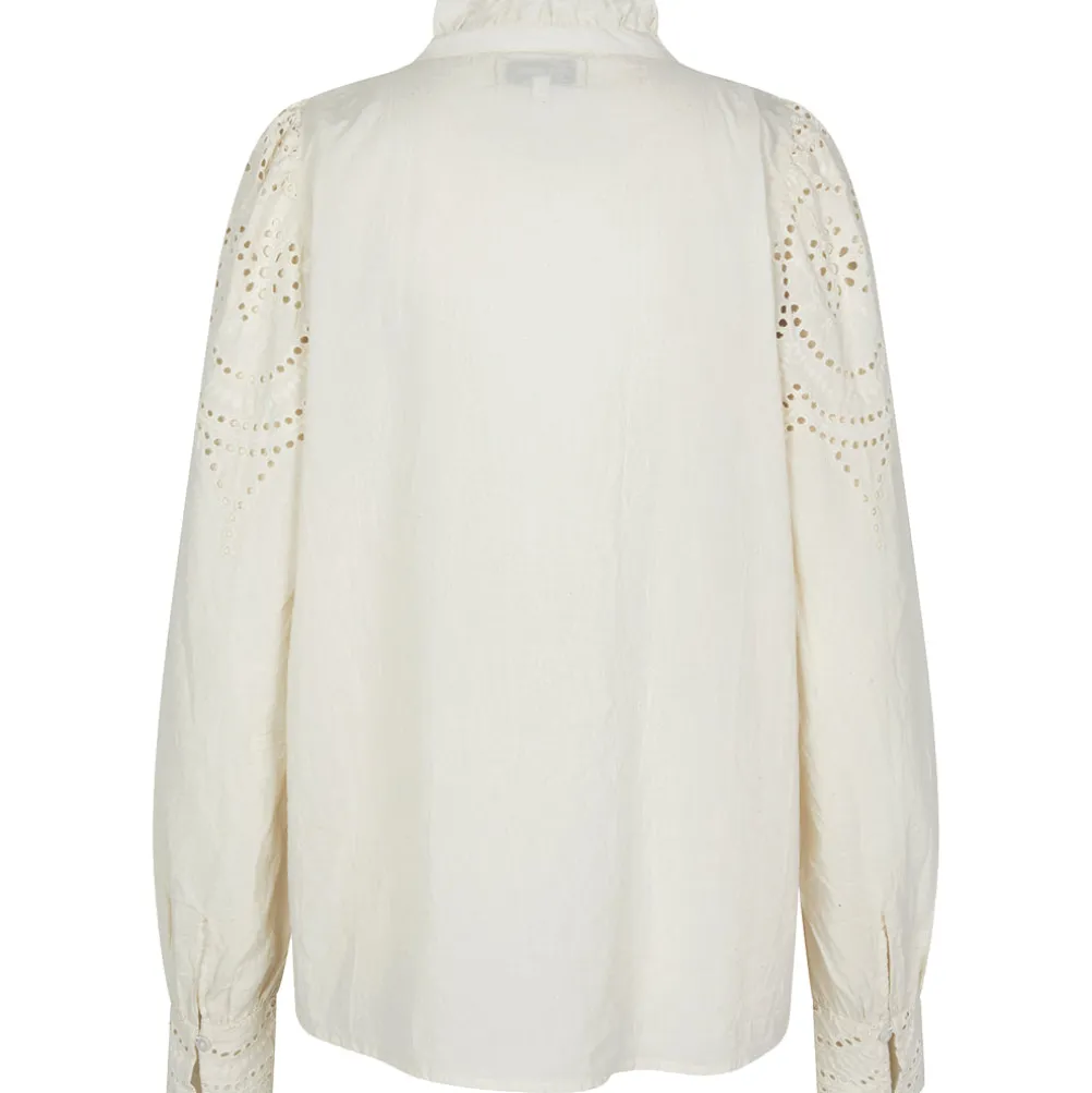 Smuk og elegant skjorte med fine detaljer fra Lollys Laundry. Med let gennemsigtige blondedetaljer og små flæser ved kraven.