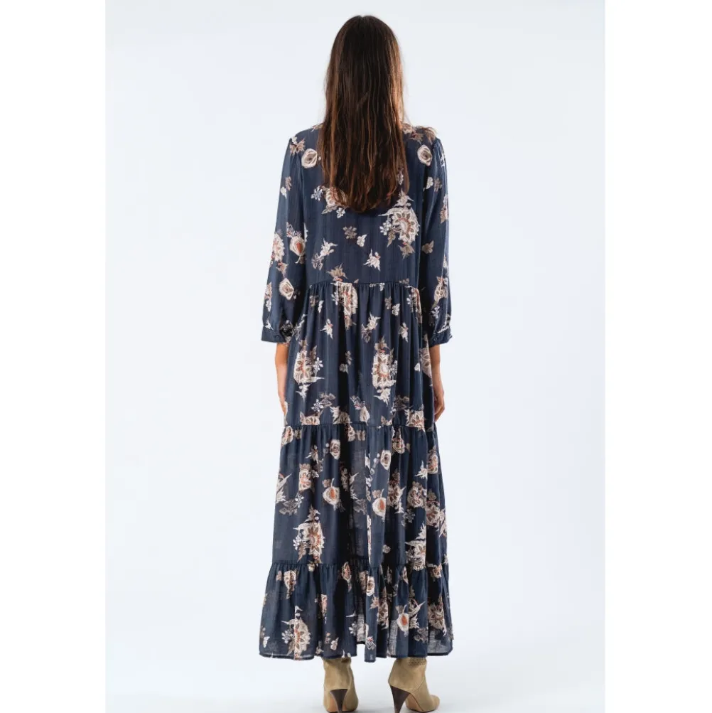 Smuk maxikjole med blomsterprint og fine detaljer fra Lollys Laundry.