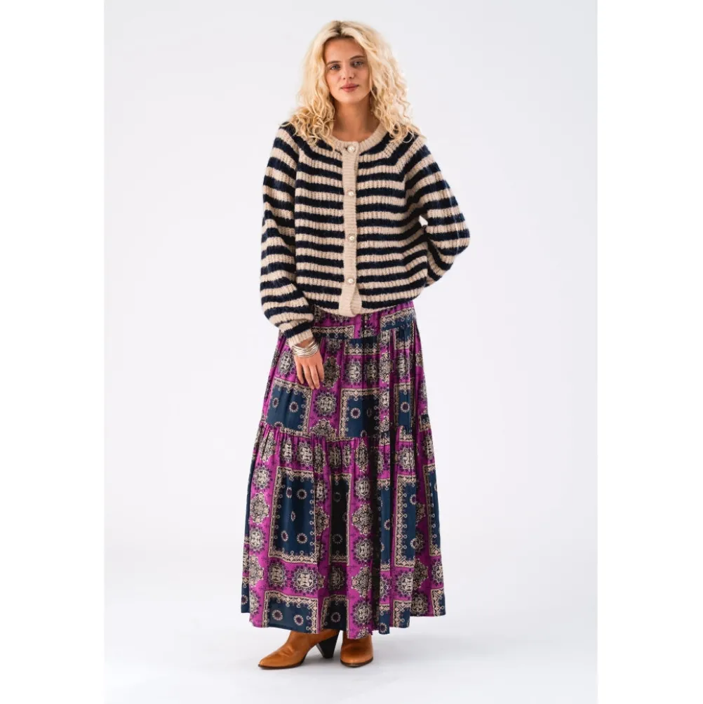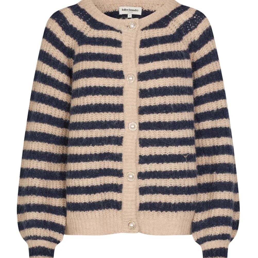 Skøn stribet strikket cardigan fra Lollys Laundry med smukke knapper! Med ribkanter. Løs pasform.
