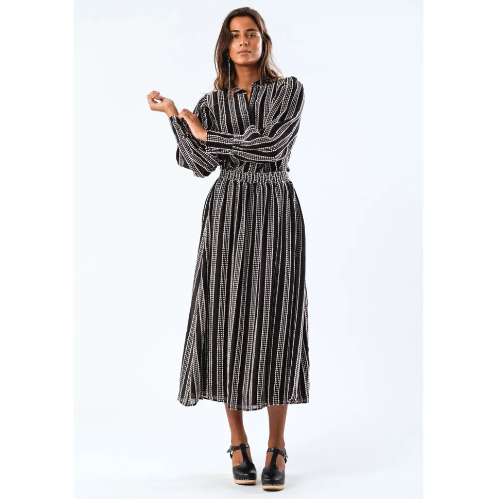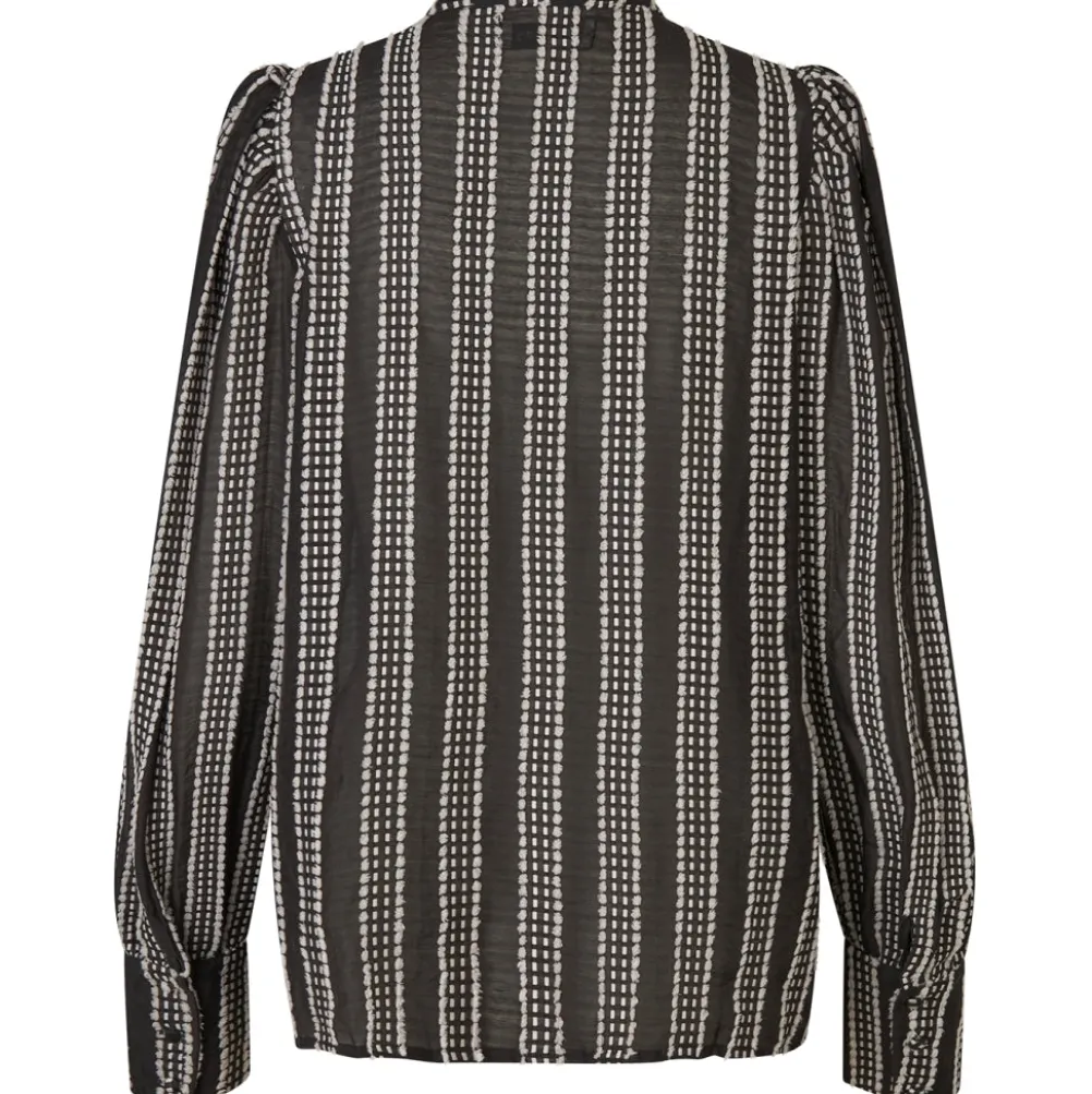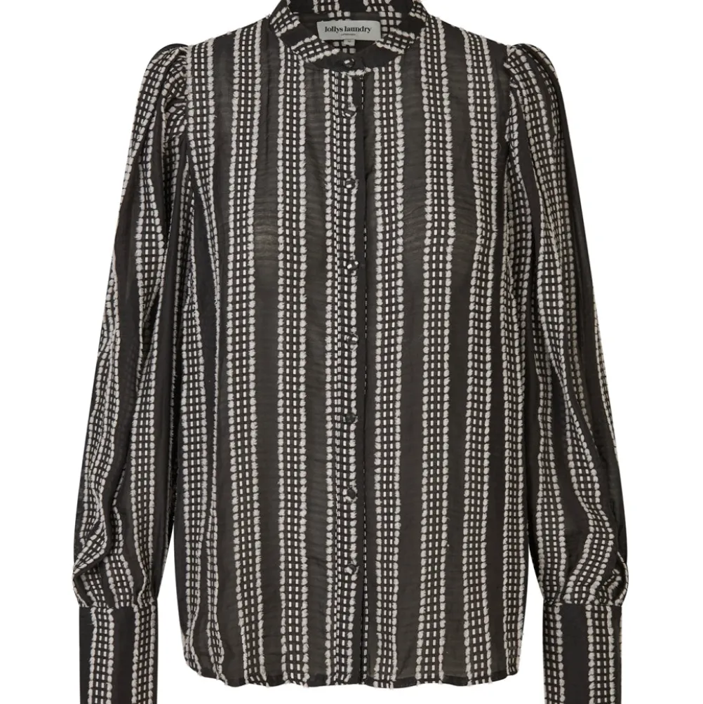 Smuk og elegant skjorte med fine detaljer fra Lollys Laundry. Med let gennemsigtige bånddetaljer. Med løse pufærmer med manchetter. Perfekt til både hverdag og fest.