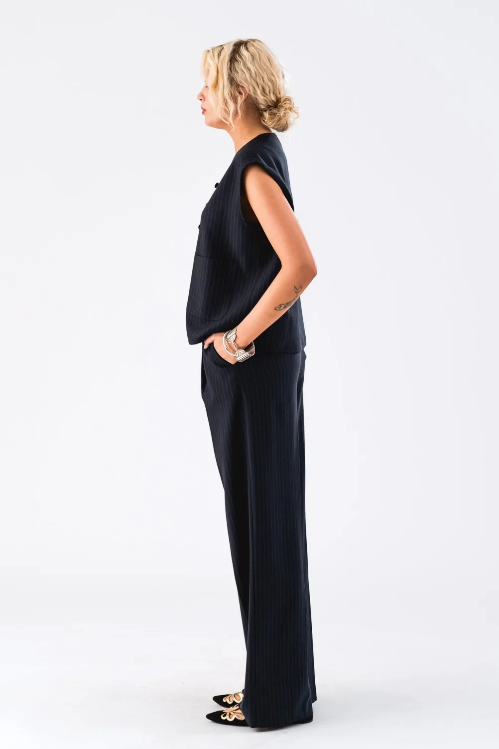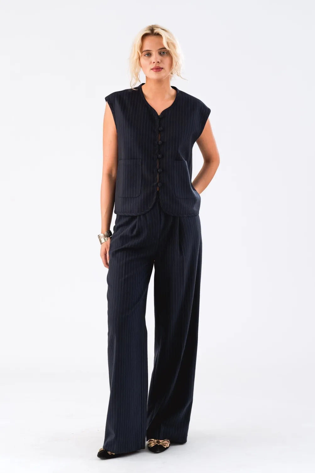 Elegante og klassiske bukser fra Lollys Laundry med pinstripes. Med pressefolder og vidde i benene. Kan med fordel styles med den matchende vest.