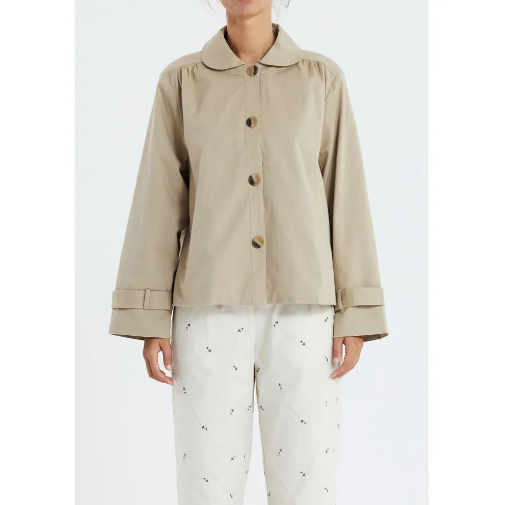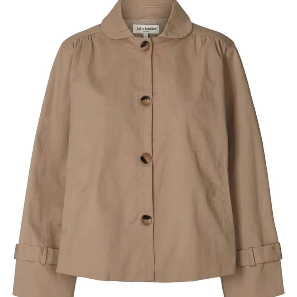 Smuk kort klassisk jakke fra Lollys Laundry i en lys sand med knaplukning og fin krave. Populær style fra Lollys Laundry.