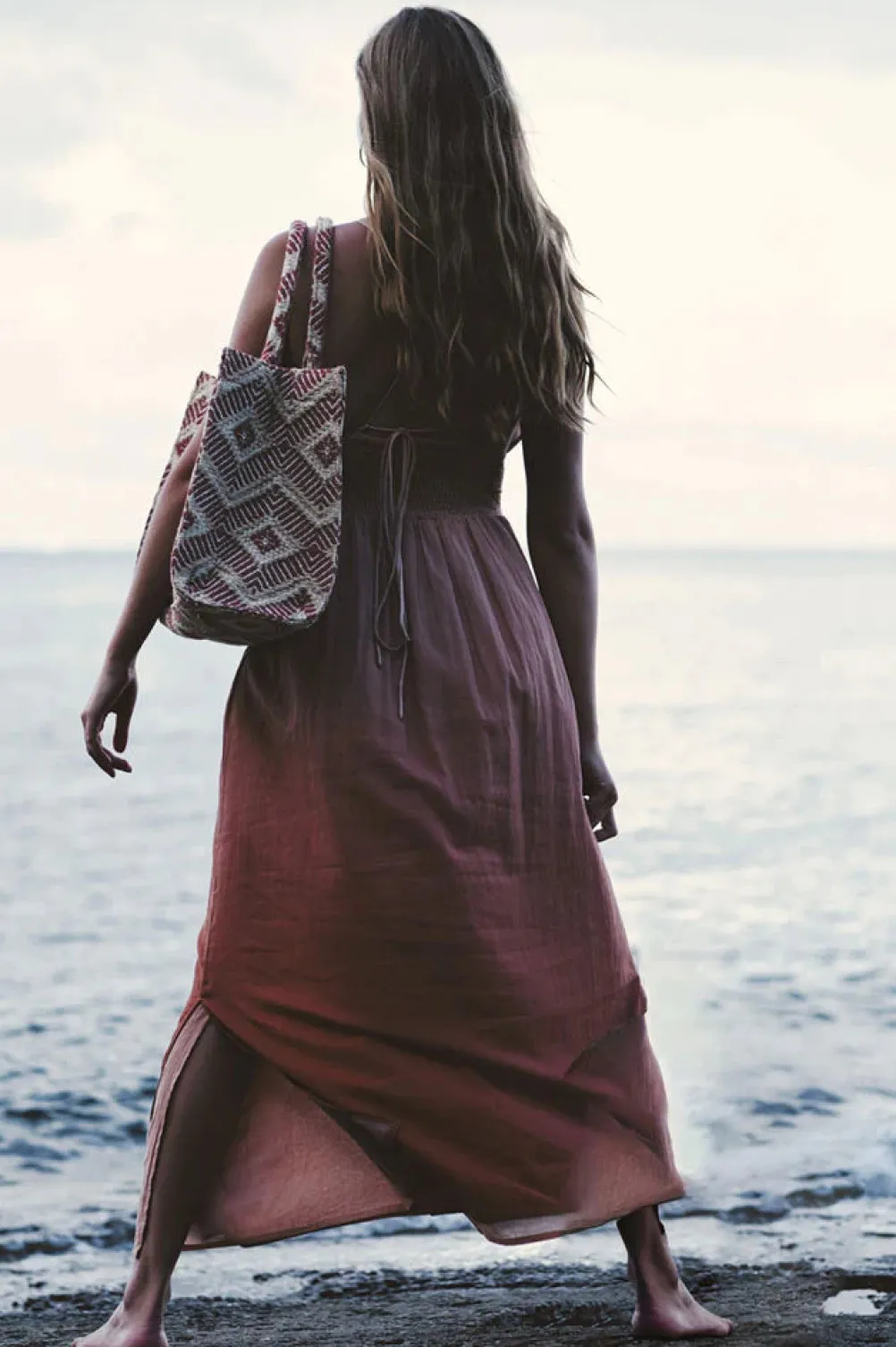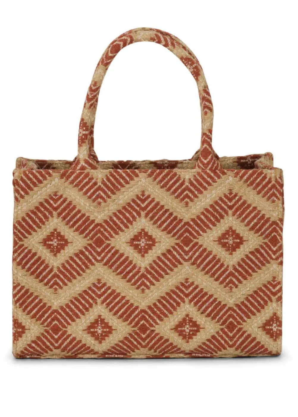 Flot stor taske med fint mønster fra Luna Moon lavet i bæredygtige naturprodukter. Tasken har tre lommer, hvor den ene lukkes med lynlås. Perfekt som strandtaske eller shopper.