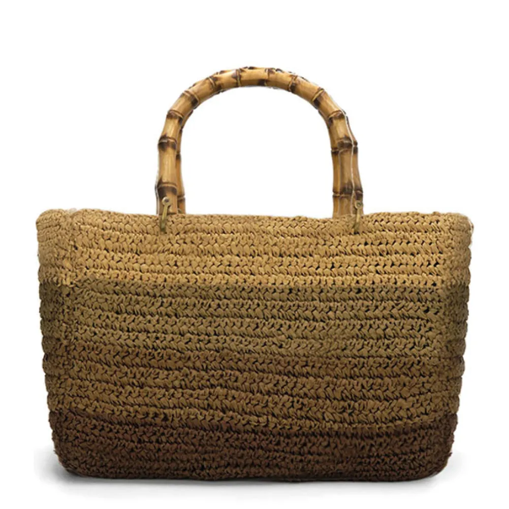 Smuk håndlavet taske i naturmaterialer fra Luna Moon. Tasken har et stort primært rum, samt to mindre lommer med lynlås. Perfekt som strandtaske eller shopper.