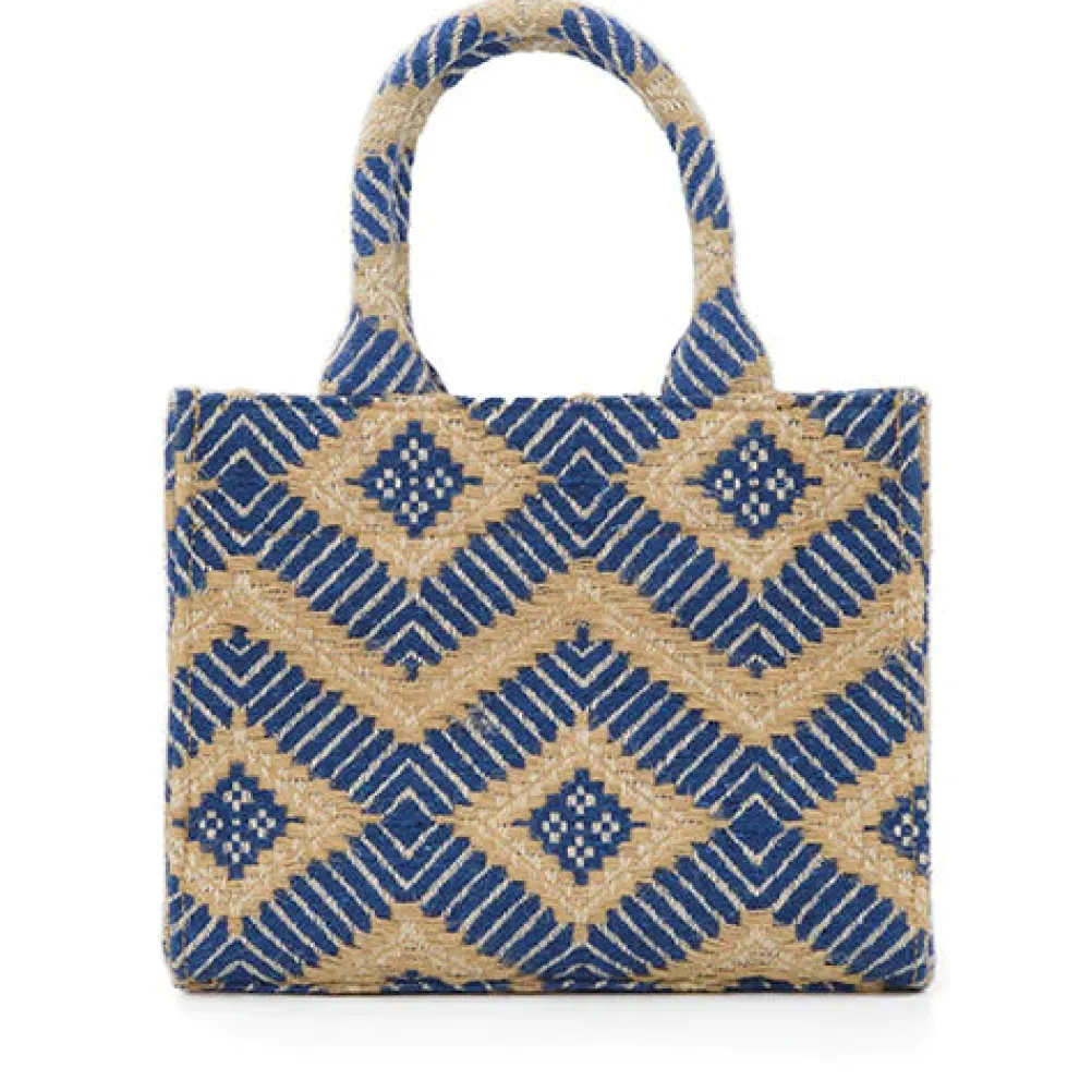 Flot mindre taske med fint mønster fra Luna Moon lavet i bæredygtige naturprodukter. Tasken har tre lommer, hvor den ene lukkes med lynlås. Perfekt som strandtaske eller shopper.