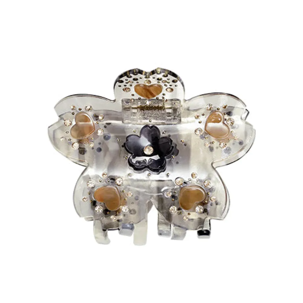 Smukt lille hårspænde dekoreret med blomst og hjerter fra Maanesten.