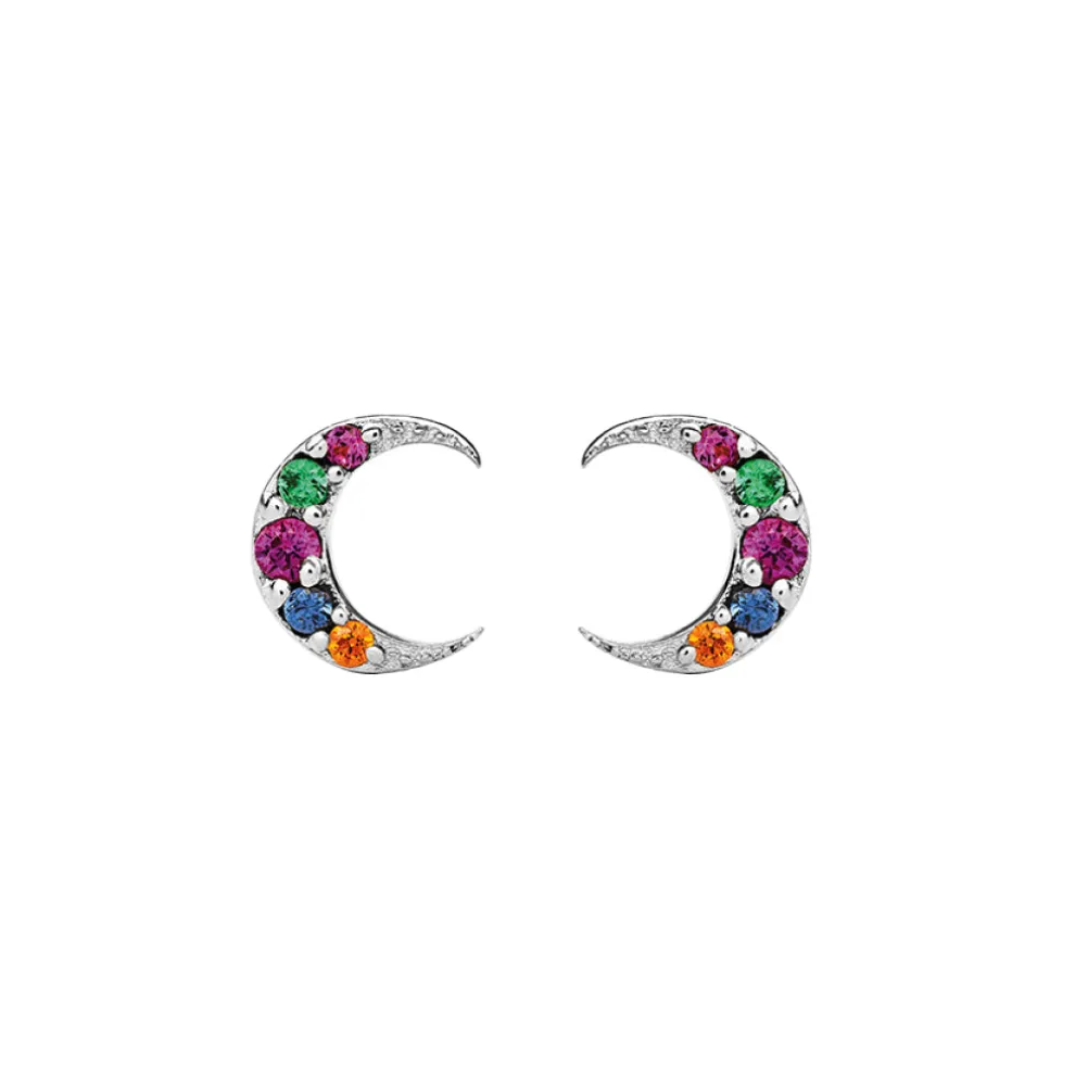 Flotte måneformede ørestikker fra Maanesten i forgyldt sterlingsølv fyldt med zirkoner i smukke farve. Mix og match med andre øreringe eller brug dem som et sæt.