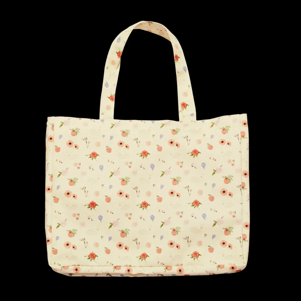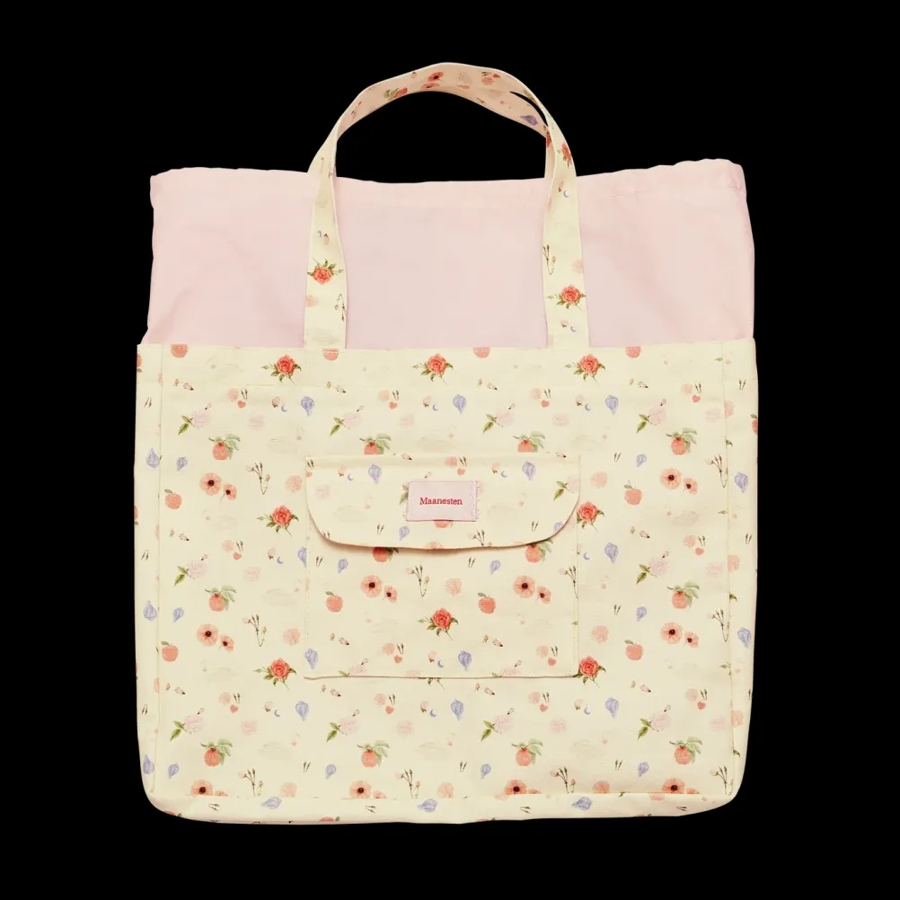 Smuk canvastaske med roser og muslinger fra Maanesten i 100 % bomuld.