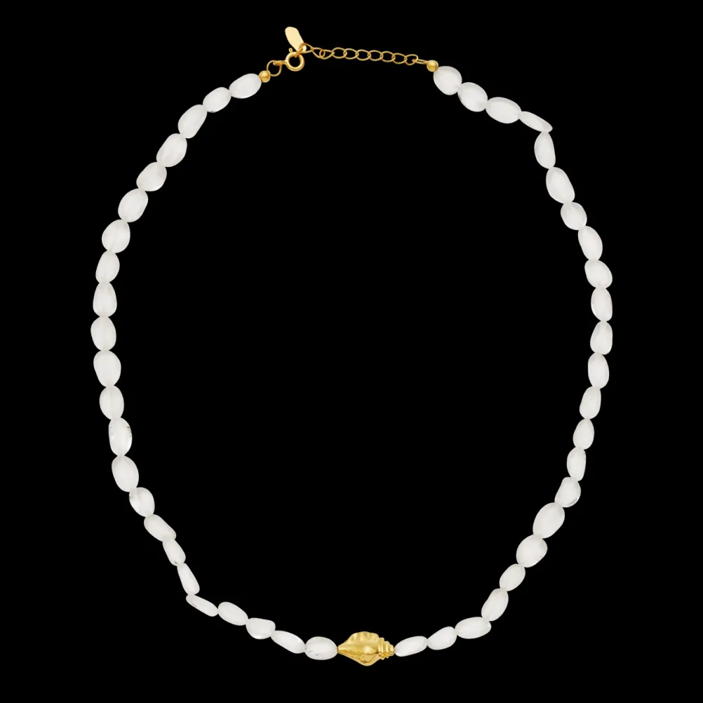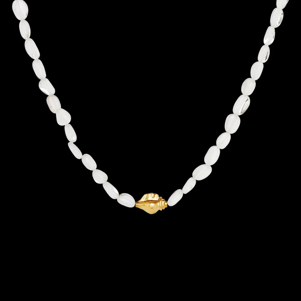 Smuk krystalhalskæde med lille muslingevedhæng fra Maanesten.