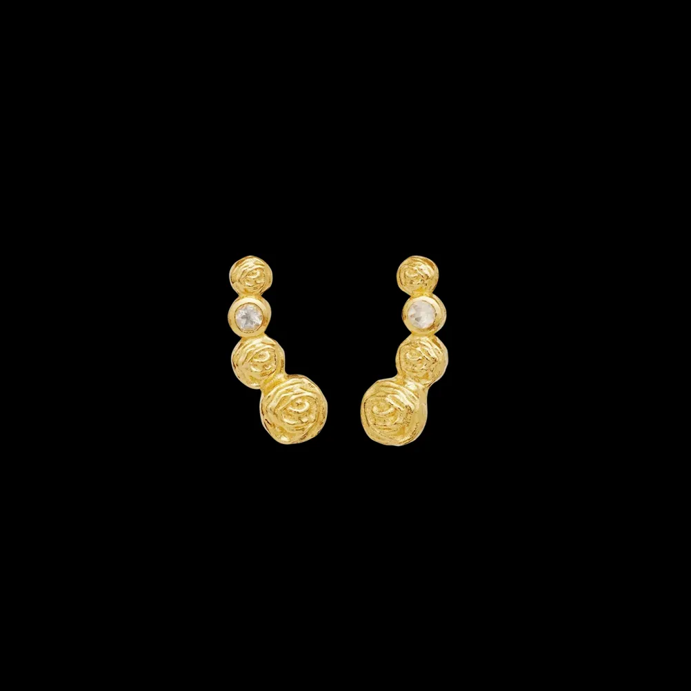 Smukke rose-ørestikkere med små sten fra Maanesten. Fås både i guld og sølv.