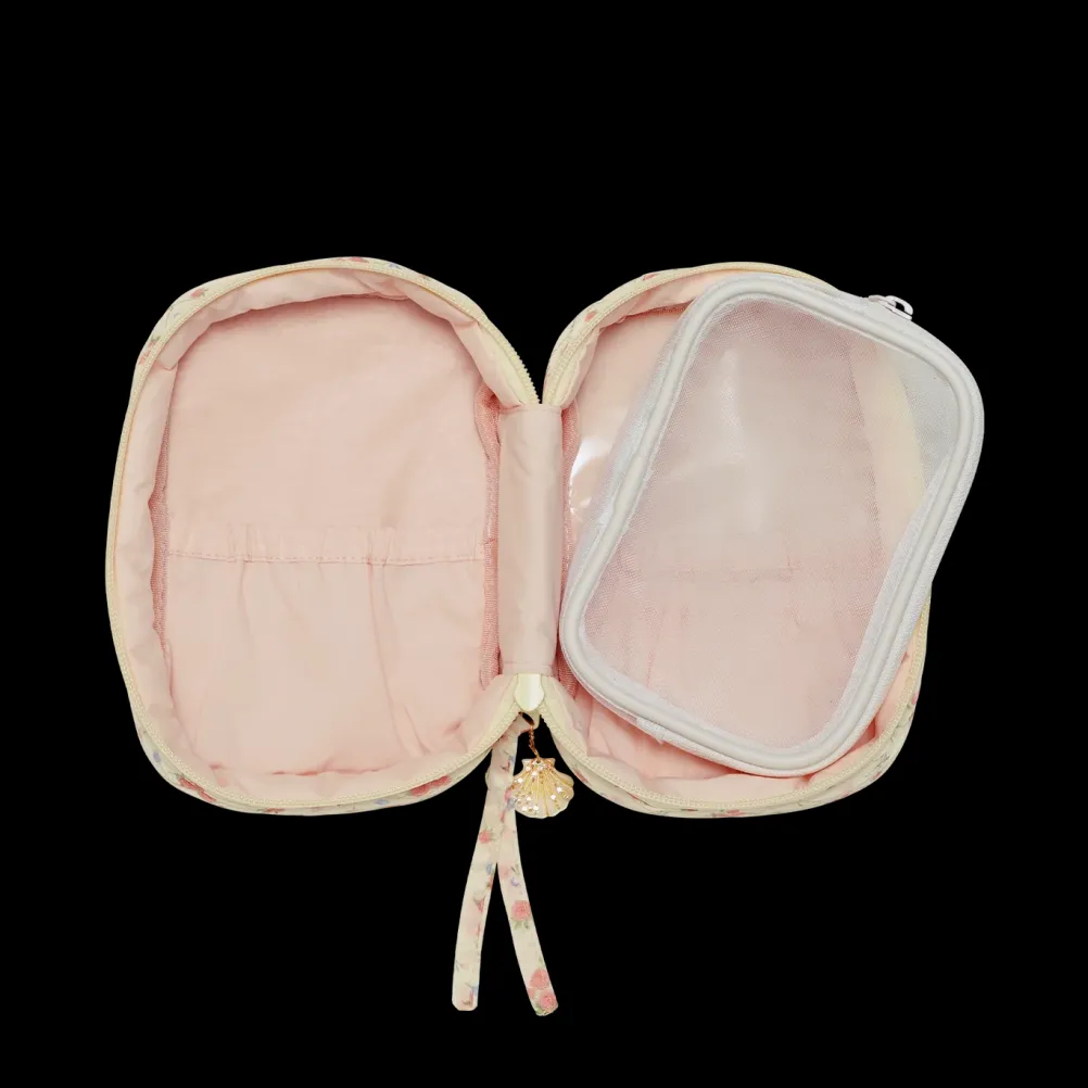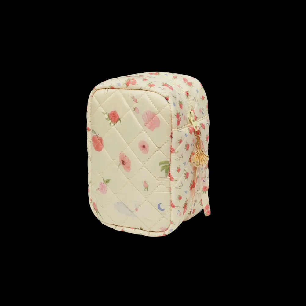 Smuk makeuptaske med roser og muslinger fra Maanesten i 100 % genanvendt polyester.
