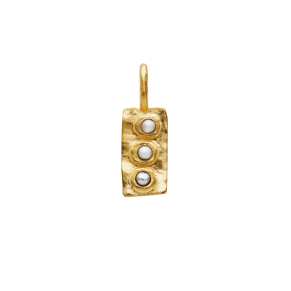 Flot vedhæng med ferskvandsperler på en gylden plade. Kan kombineres med andre vedhæng for et moderne look.