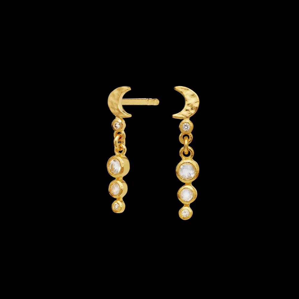 Smukke øreringe med månesten og zirkonia-vedhæng fra Maanesten. Fås både i guld og sølv.