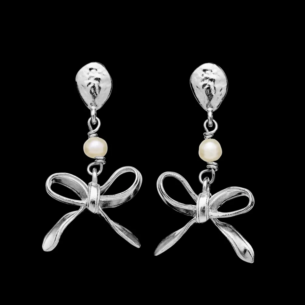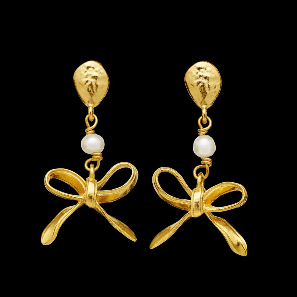 Smukke øreringe med sløjfe- og iolitvedhæng fra Maanesten. Fås både i guld og sølv.