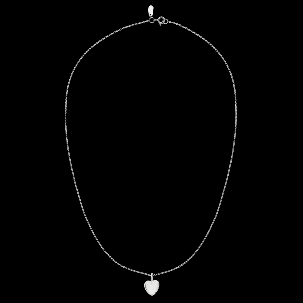 Smuk halskæde med krystalhjerte-vedhæng fra Maanesten. Fås både i guld og sølv.