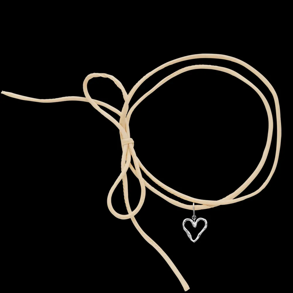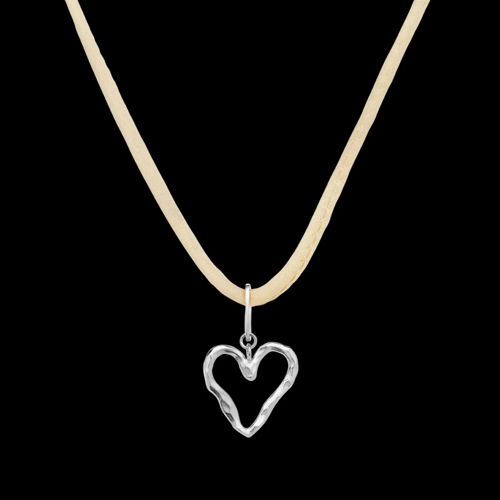 Smuk choker halskæde med hjerte-vedhæng fra Maanesten. Fås både i guld og sølv.