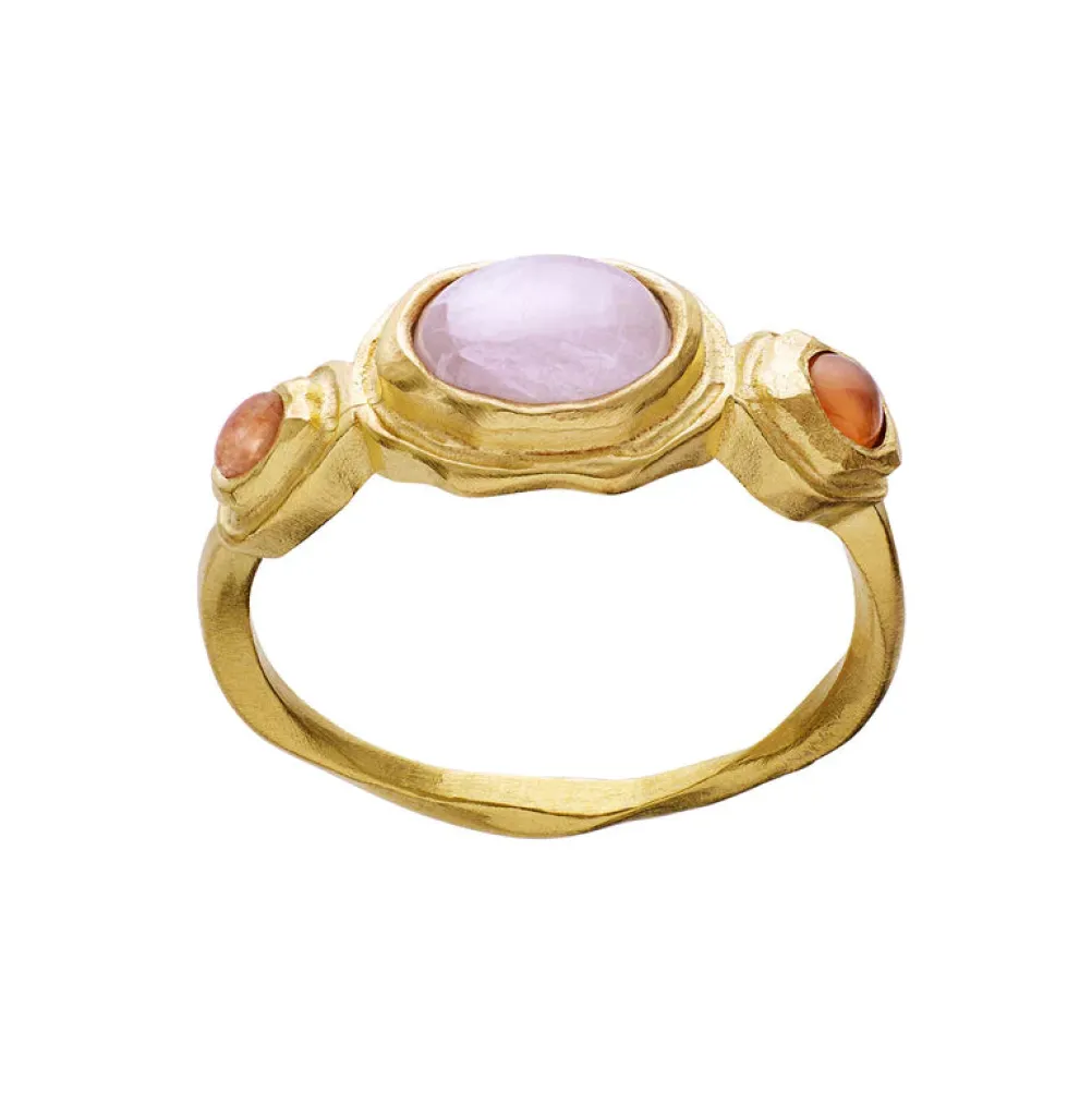 Smuk og unik ring fra Maanesten med solsten, kunzit og karneol.