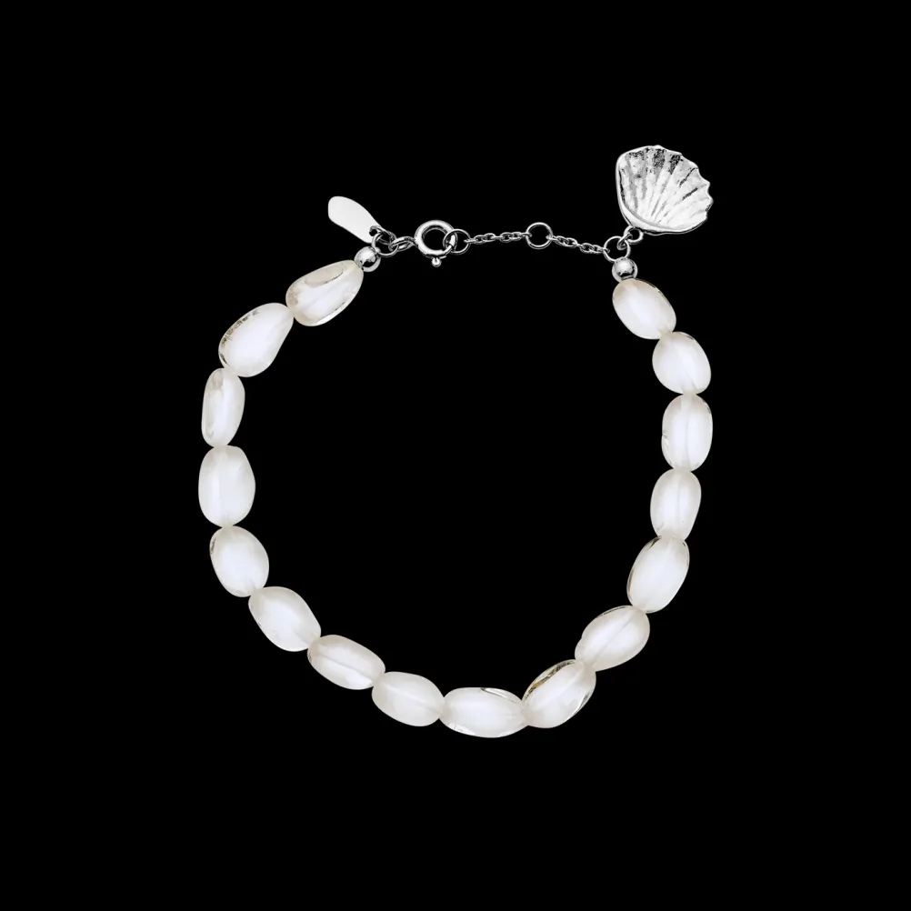 Smuk krystalarmbånd med lille muslingevedhæng fra Maanesten.