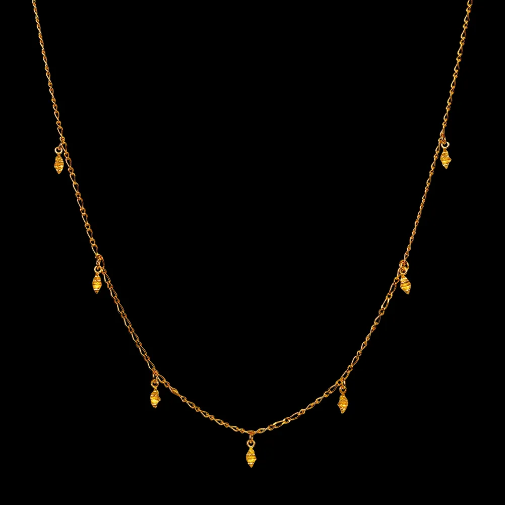 Smuk halskæde med fine små vedhæng fra Maanesten. Fås både i guld og sølv.