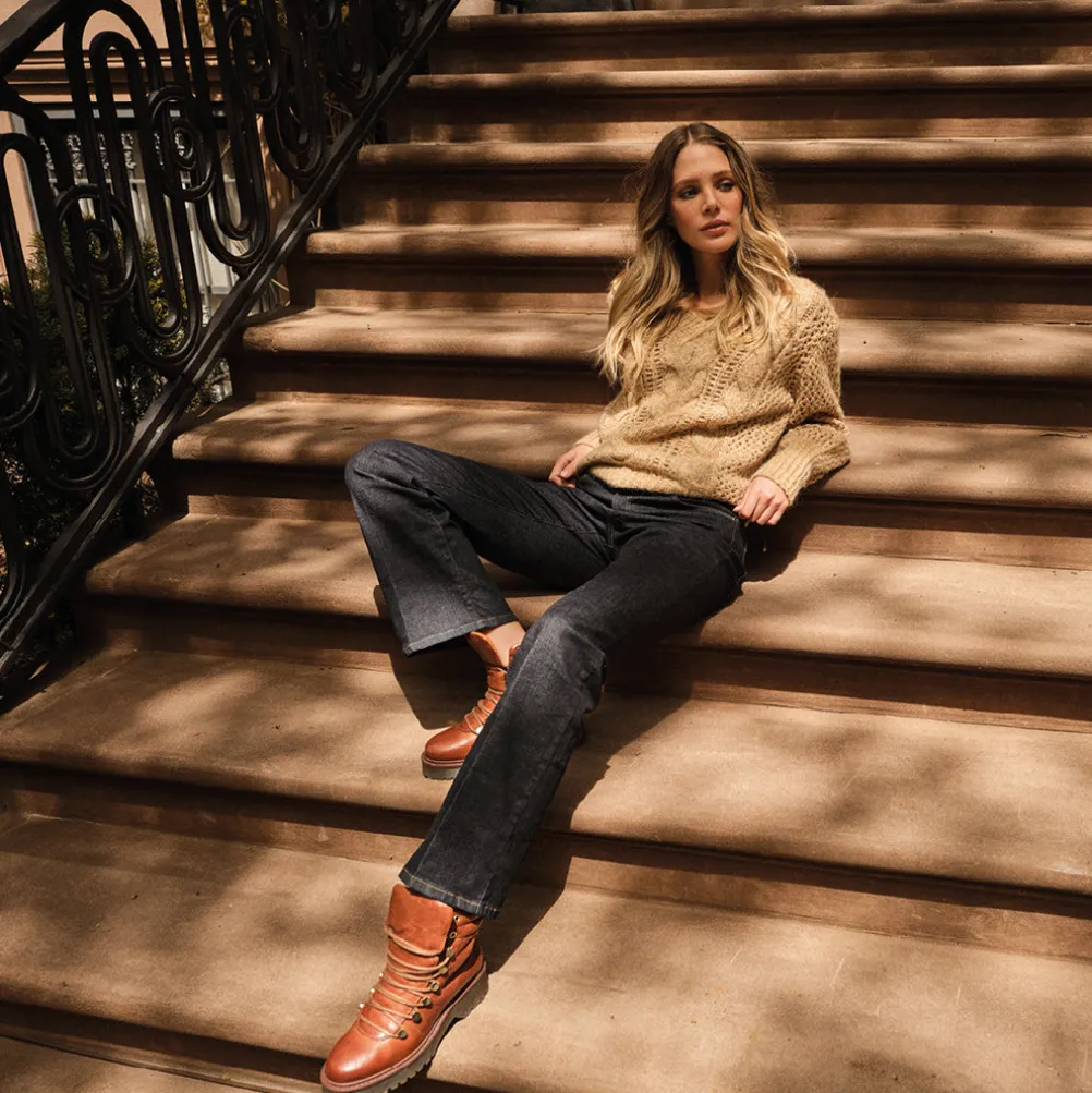 Cool højtaljede jeans i box fit. Bukserne har finish med let kick ved anklen, samt presfolder, som giver et cool 70r feel.