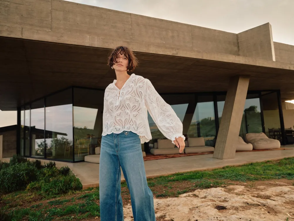 Cool blå jeans fra Mos Mosh designet i en wide-leg-pasform med høj talje og fine detaljer.