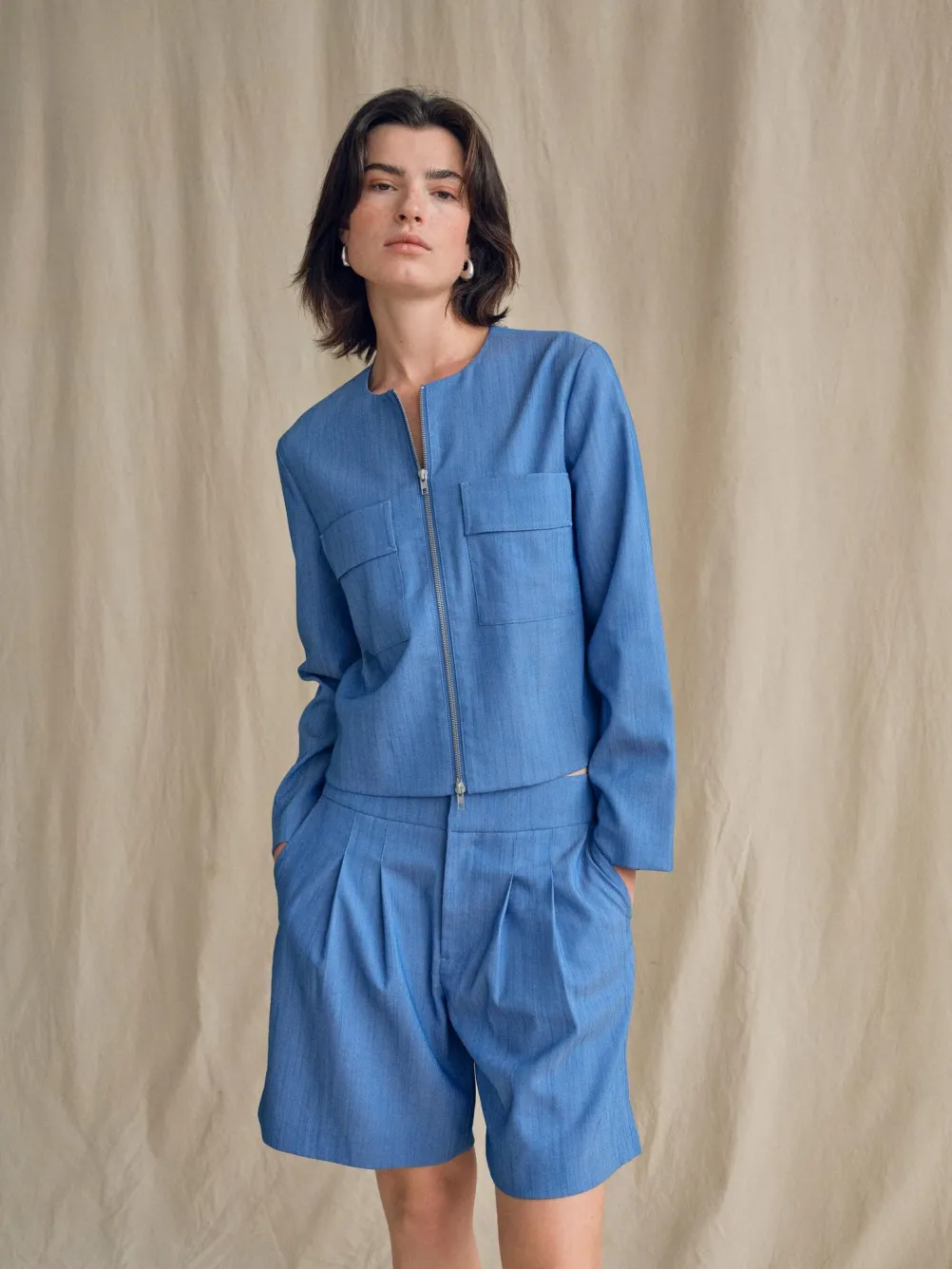 Flotte klassiske blå shorts fra Mos Mosh lavet i et sporty denimlook med pressefolder.