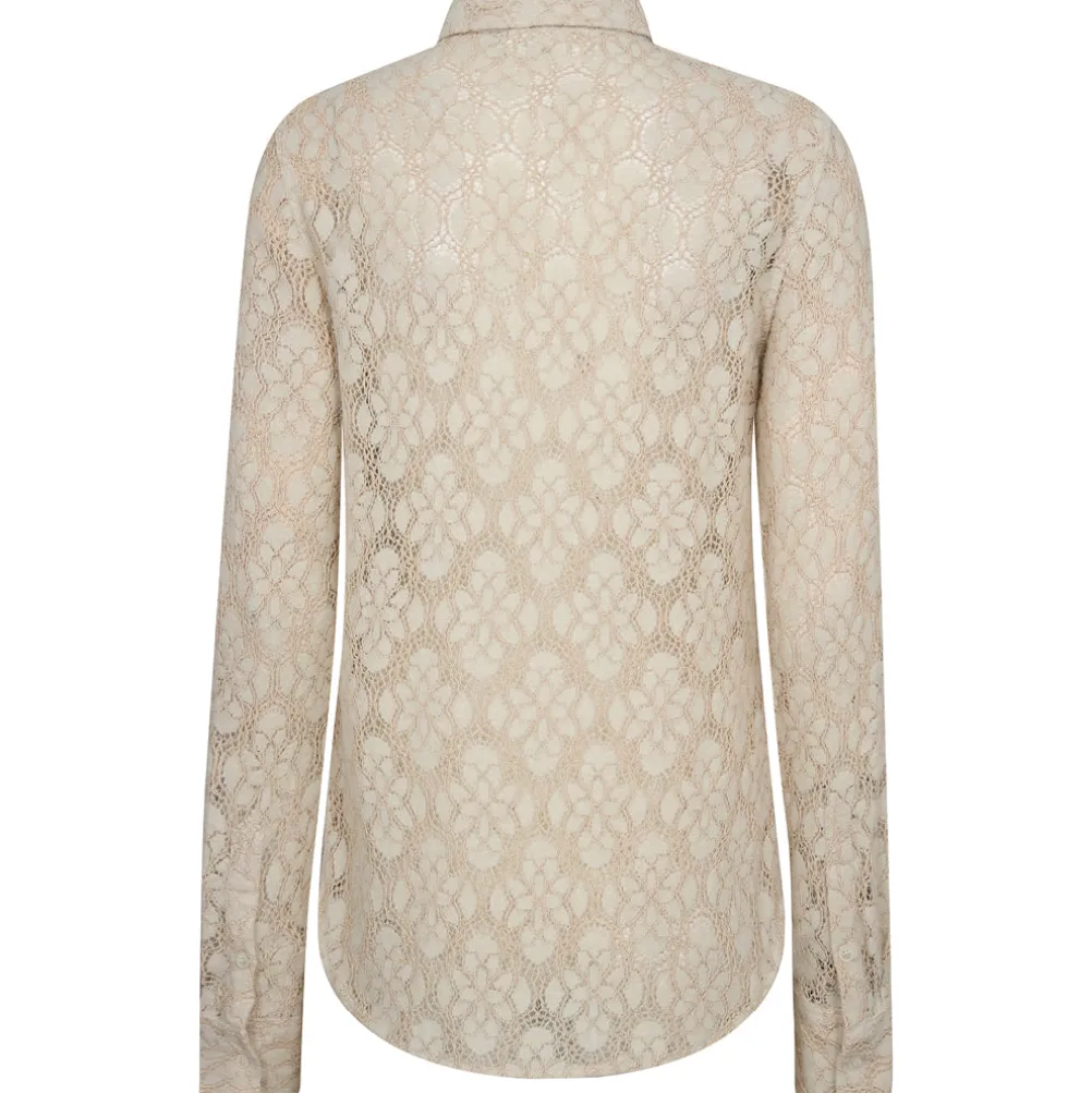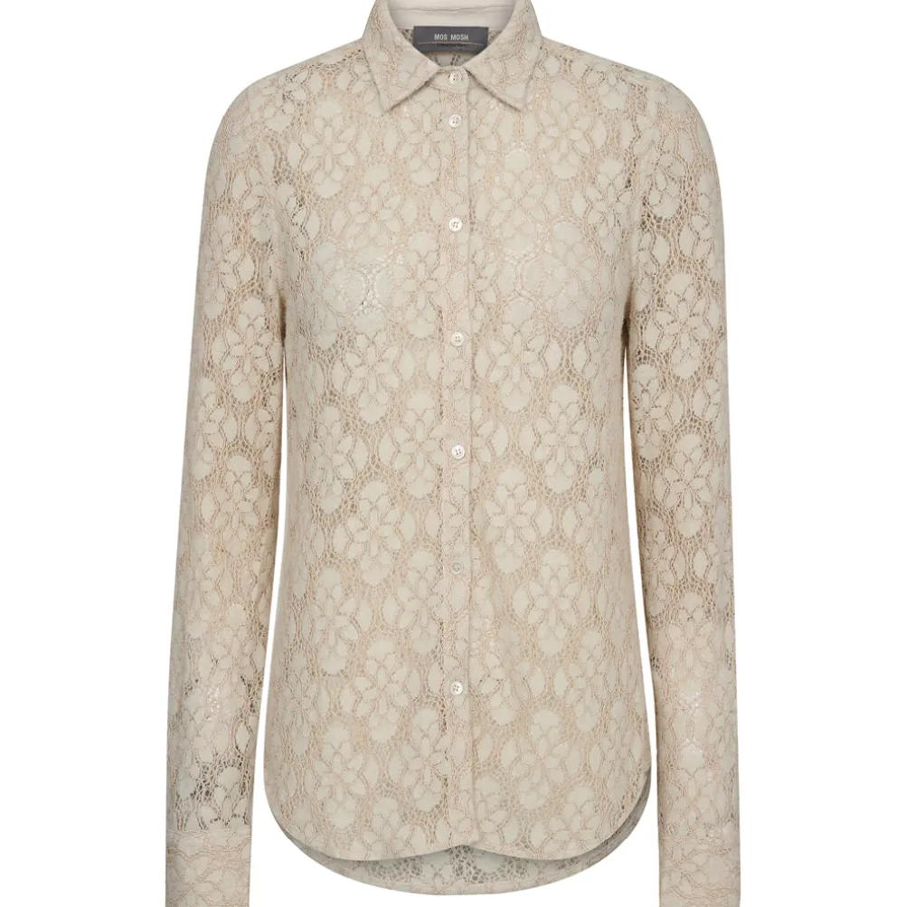 Smuk blondeskjort fra Mos Mosh. Med klassisk krave og manchetter. Perfekt til både hverdag og fest.