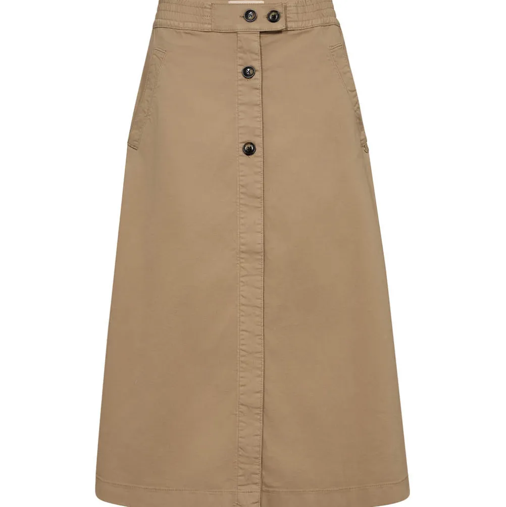 Flot og elegant lang nederdel fra Mos Mosh med fine detaljer. Designet i et a-snit, som går til lige under knæene. Med mørke dekorative knapper.