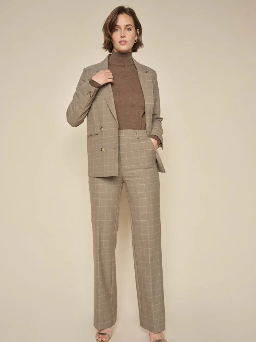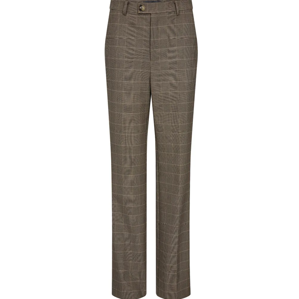 Flotte ternede klassiske bukser fra Mos Mosh. Med lige ben og middelhøj talje. Med skrå lommer, knaplukning og markante pressefolder for et elegant udtryk. Kan styles som et sæt med den matchende blazer.