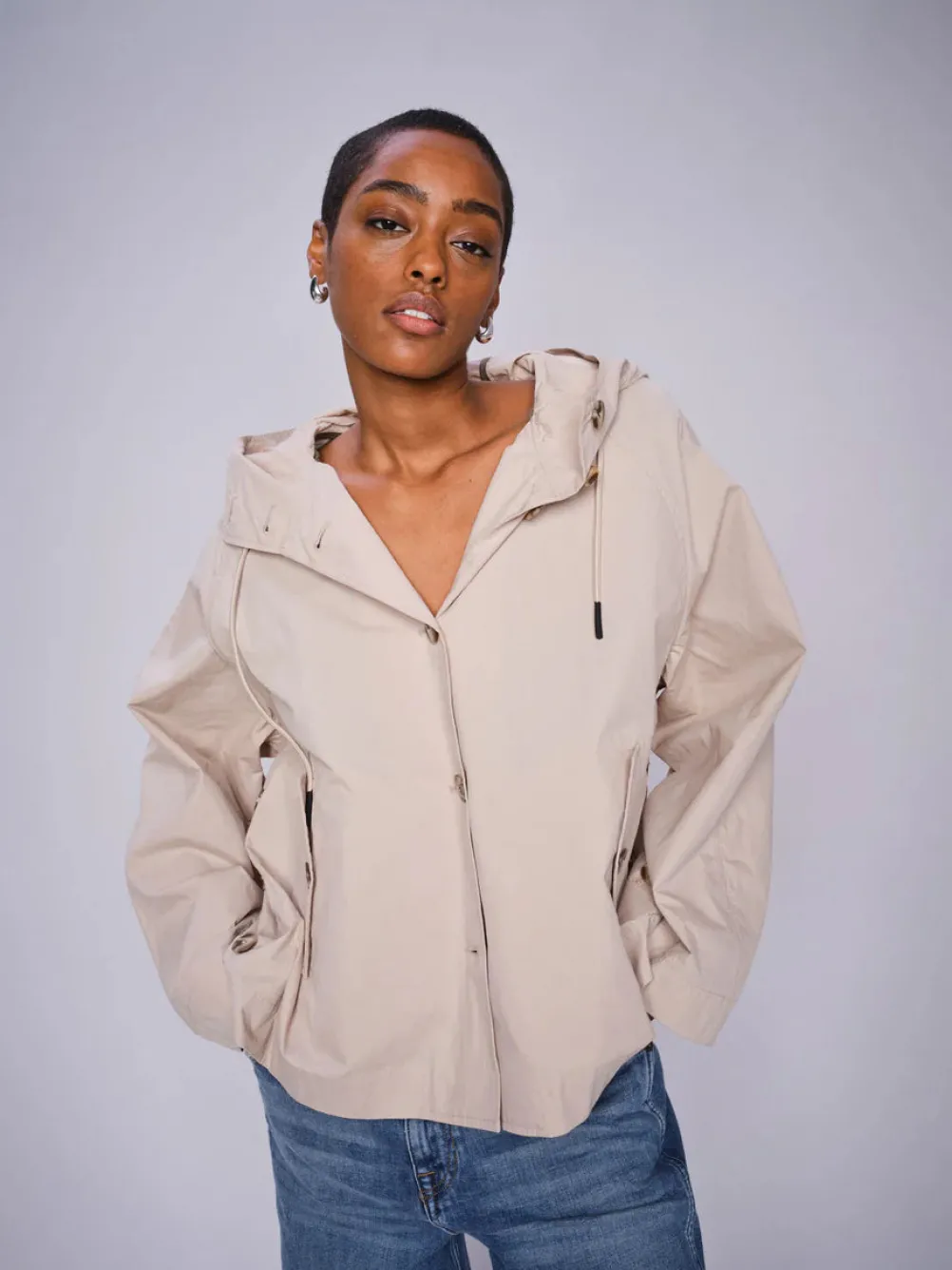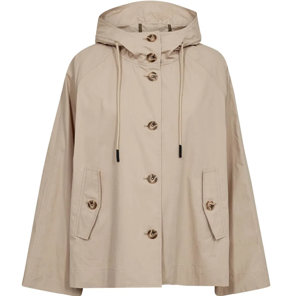 Cool og elegant parkajakke fra Mos Mosh designet i en afslappet pasform med hætte med bindebånd og sidelommer. Med fine store knapper.