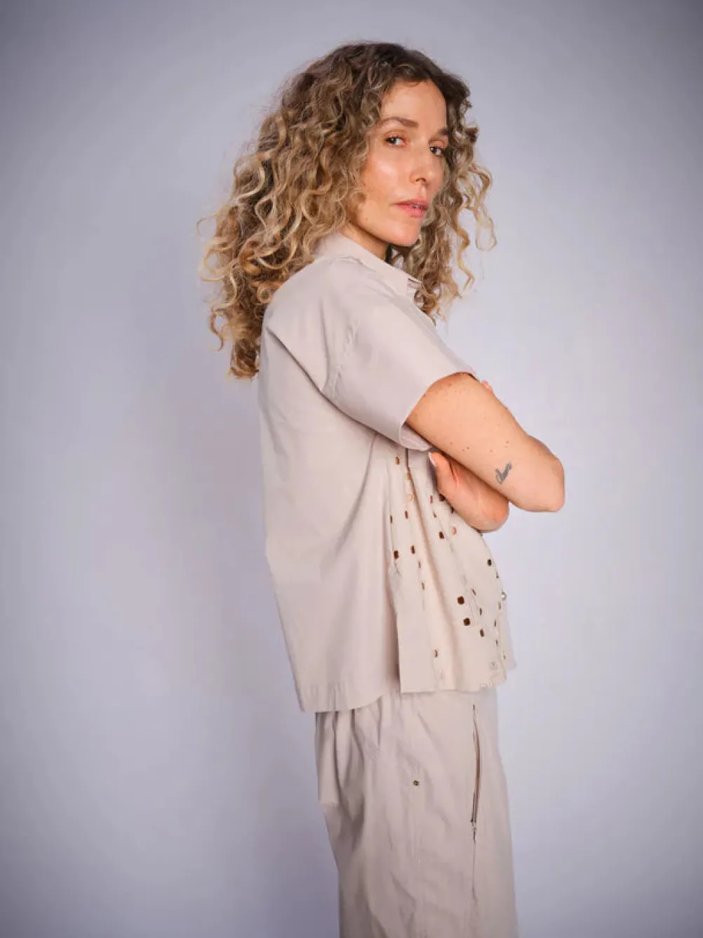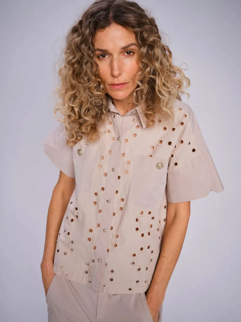Flot klassisk skjorte fra Mos Mosh med fine detaljer! Med hulmønster og brystlommer med guldknapper.