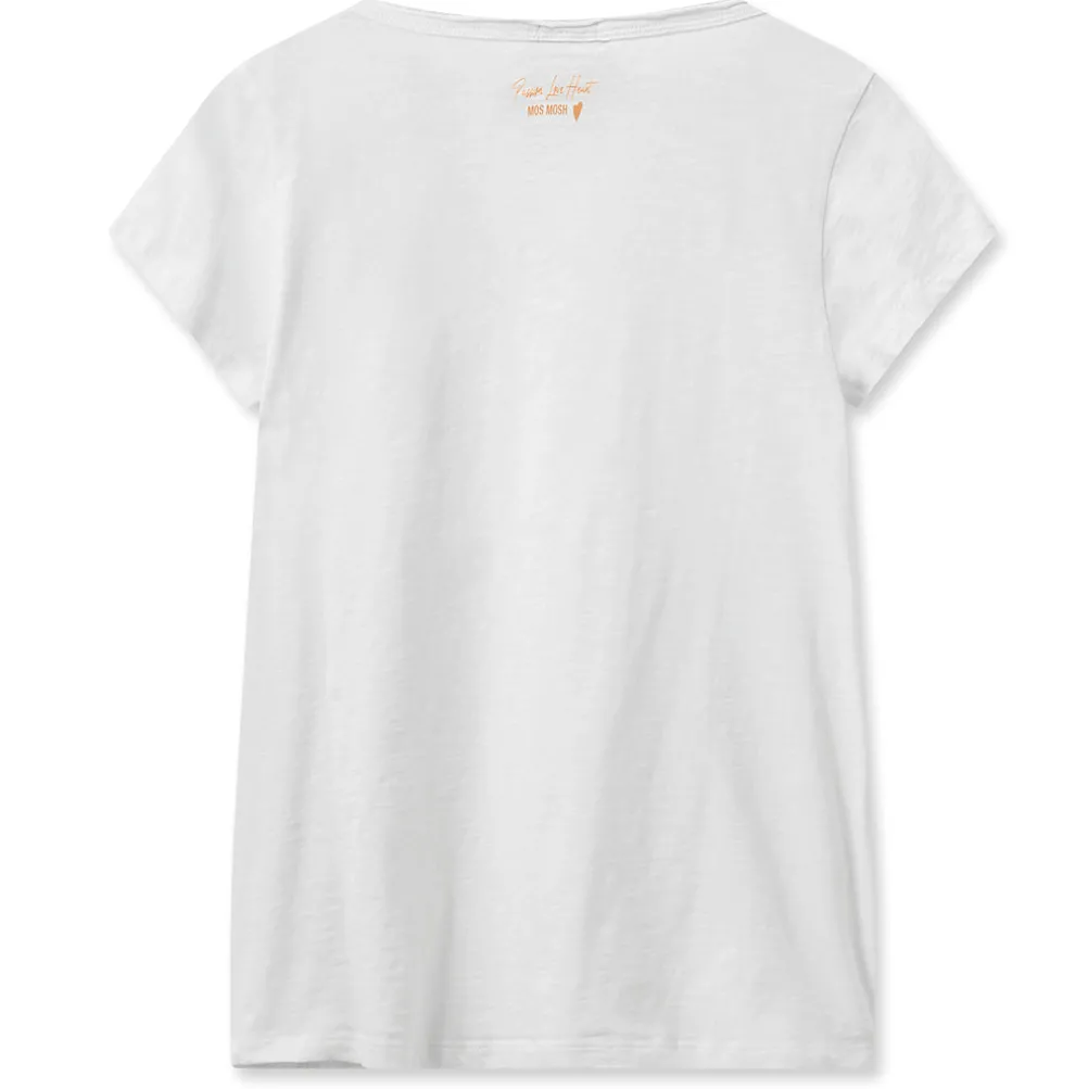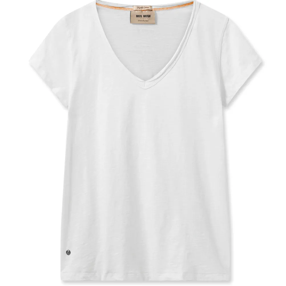 Lækker alsidig t-shirt fra Mos Mosh i blød bomuld med v-hals. Med MOS MOSH-tekst i nakken som en fin detalje.