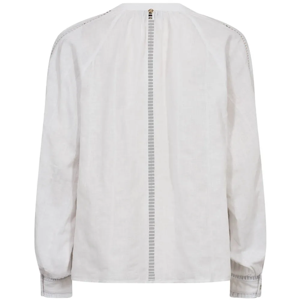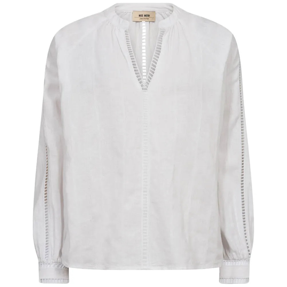 Flot bluse i hørblanding fra Mos Mosh. Med små gennemsigtige bånd og v-udskæring. Kan styles på mange måder.
