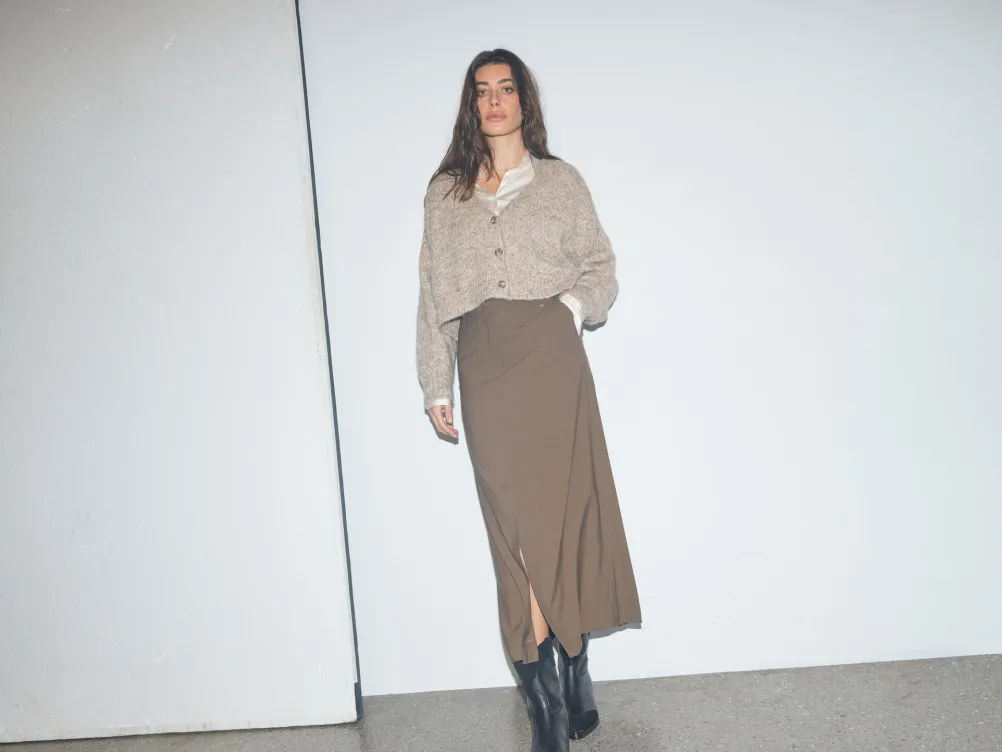 Skøn strikket cardigan fra Mos Mosh fremstillet i en luksuriøs blanding af blød alpaka i en skøn melange-strik. Med v-udskæring og knaplukning. Kan styles med det meste.