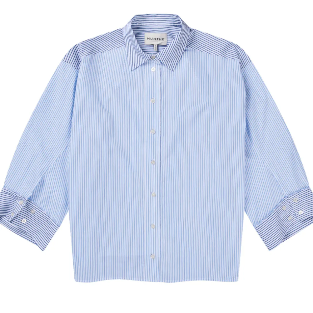 Klassisk oversize skjorte fra Munthe med nålestriber, klassisk krave og brede ærmer med manchetter.