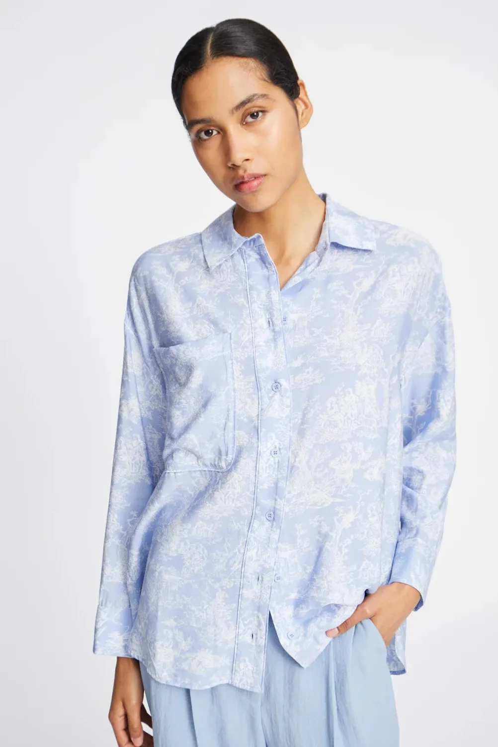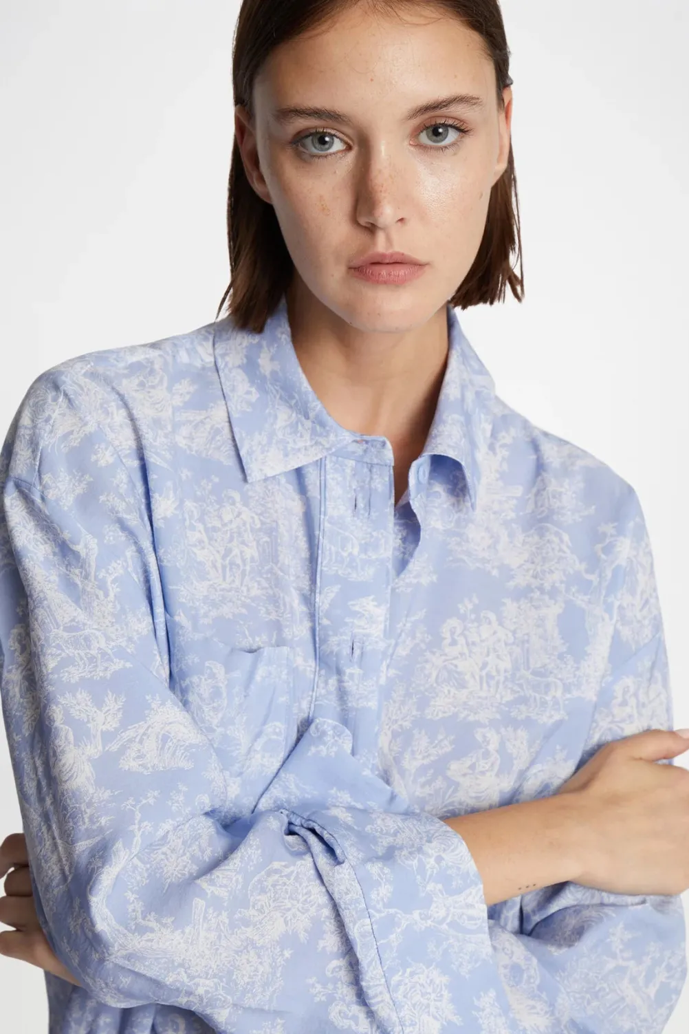 Elegant skjorte fra Munthe med smukt print og knaplukning. Med klassisk krave og manchetter.