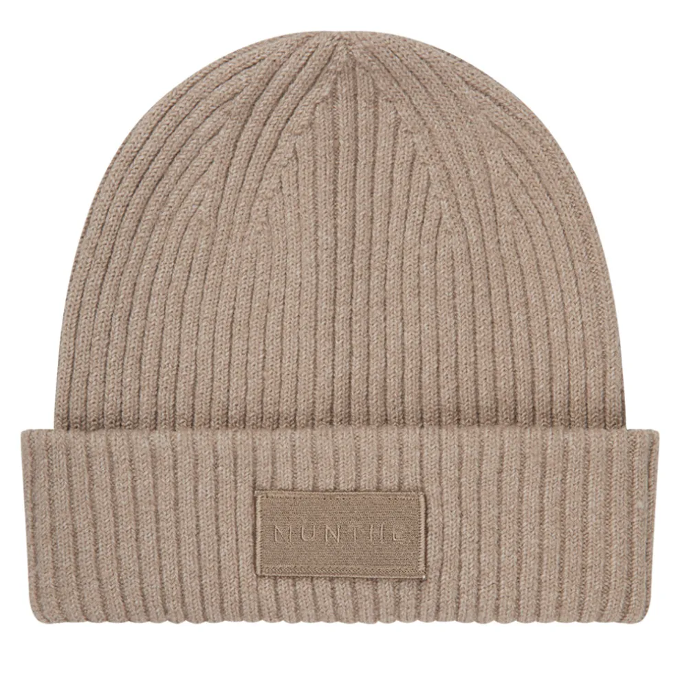 Lækker og blød populær ribstrikket hue i uldblanding med cool Munthe logo.
