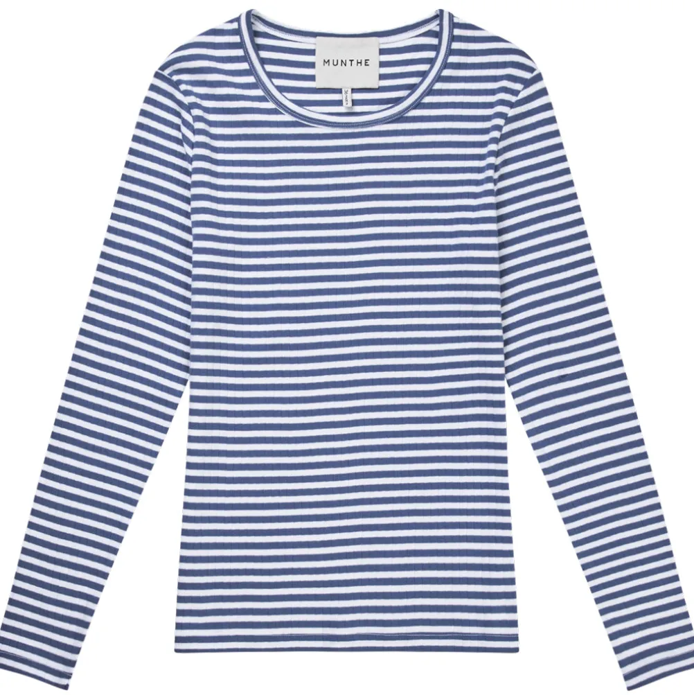 Langærmet stribet t-shirt designet med tynde striber. Blusen har rund hals og en tætsiddende pasform.