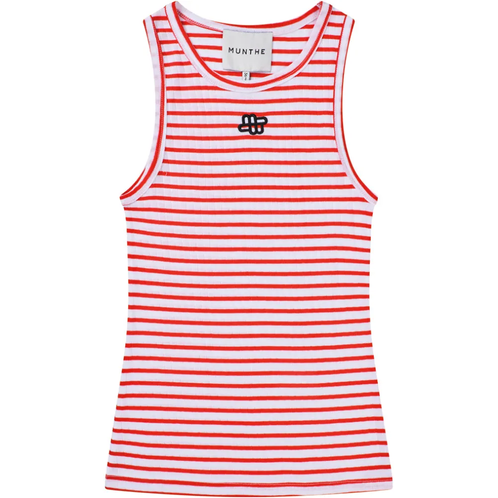 Flot og enkel top fra Munthe med fint emblem broderi på brystet. Med rund hals.