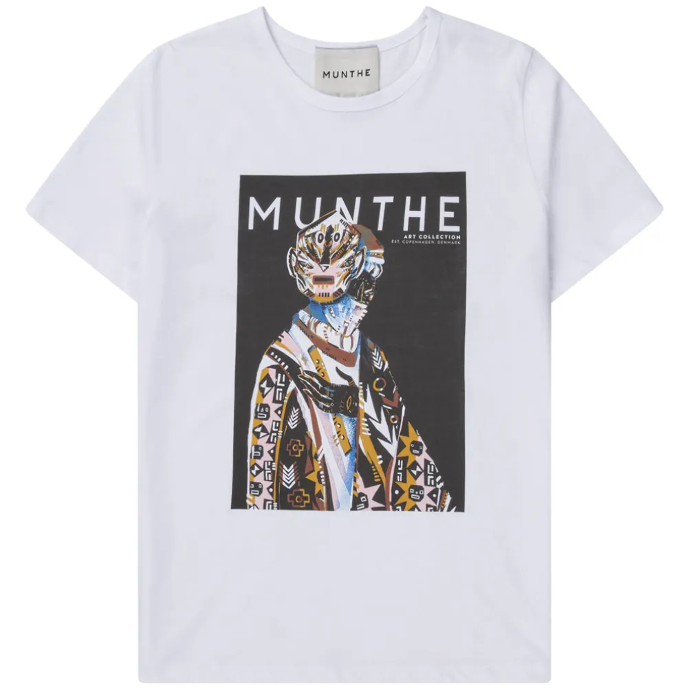 Cool t-shirt fra Munthe. T-shirten har rund hals, korte ærmer og et cool print foran.