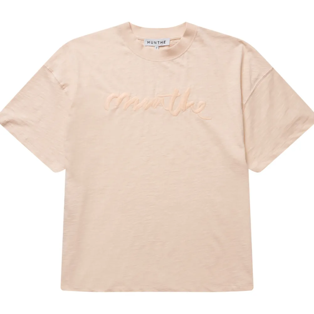 Flot t-shirt fra Munthe med flot broderet Munthe logo. Med korte ærmer og rund hals. Lavet i økologisk bomuld.