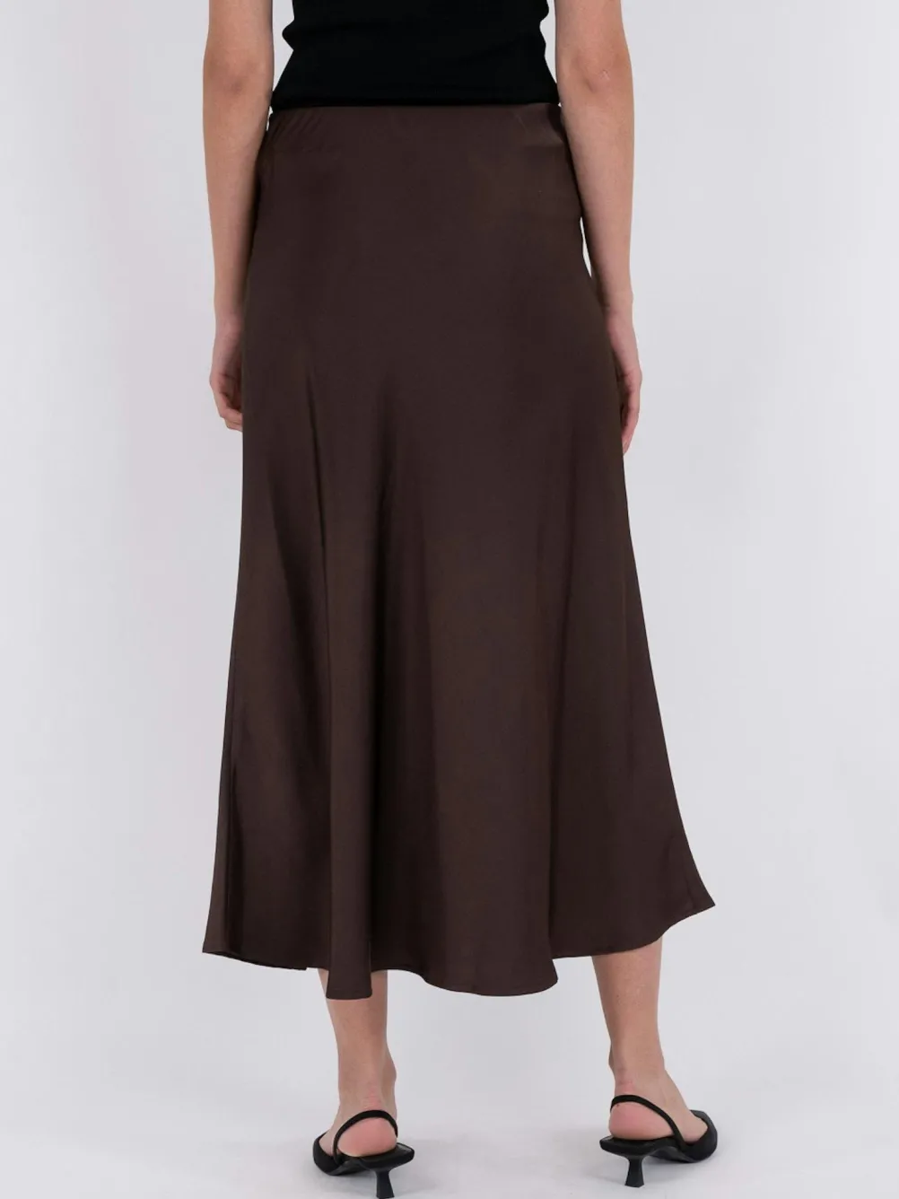 Flot lang populær satinnederdel fra Neo Noir. Nederdelen er skåret på skrå og følger kroppen og falder smukt. Med elastik i taljen. Perfekt til både hverdag og fest.