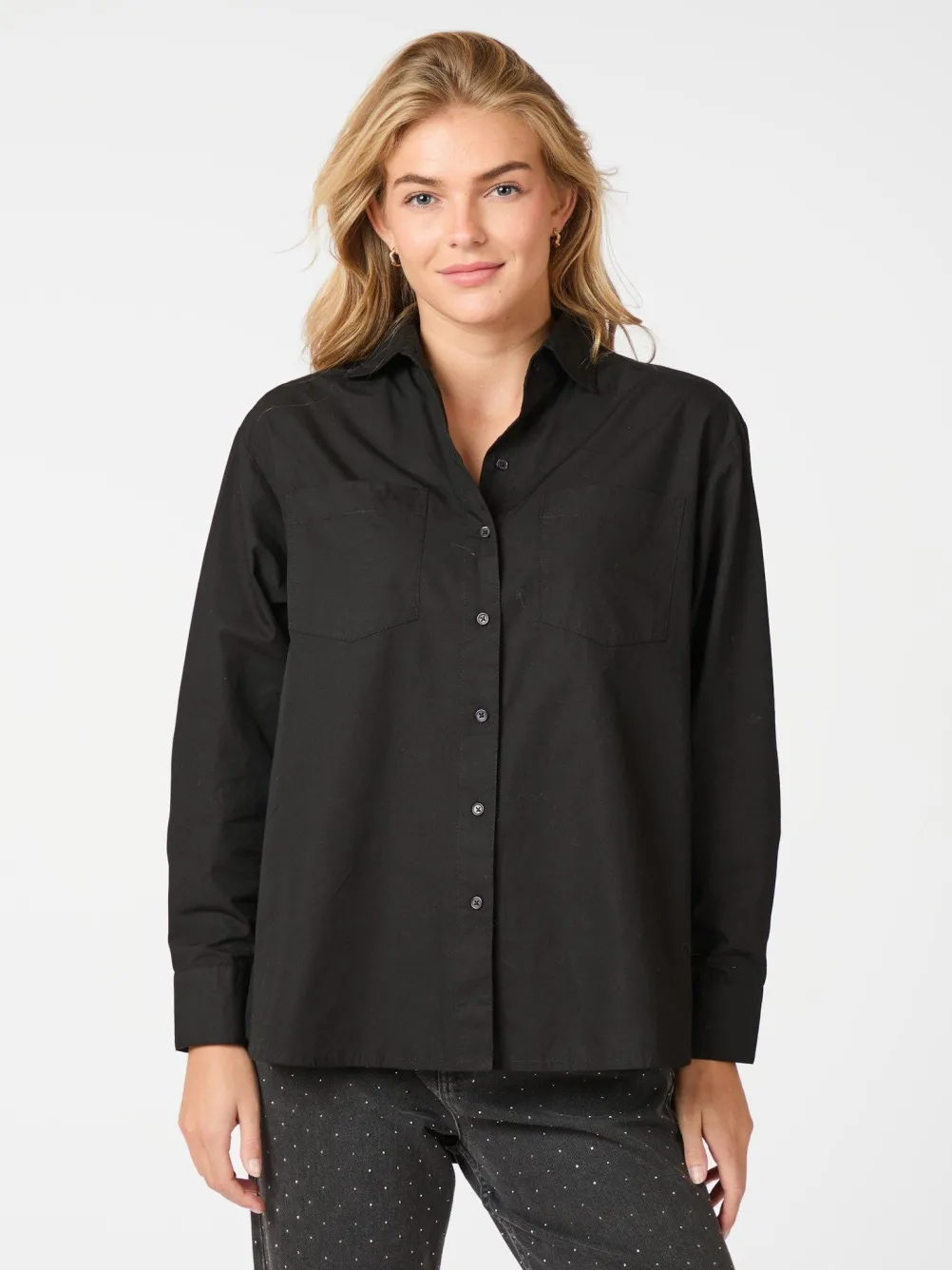 Fin klassisk løs sort skjorte fra Neo Noir. Med brystlomme og klassisk krave. Lavet i en lækker poplinkvalitet.