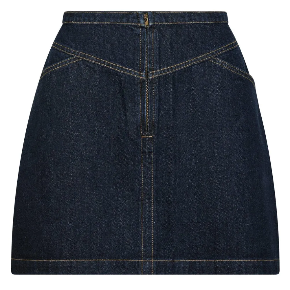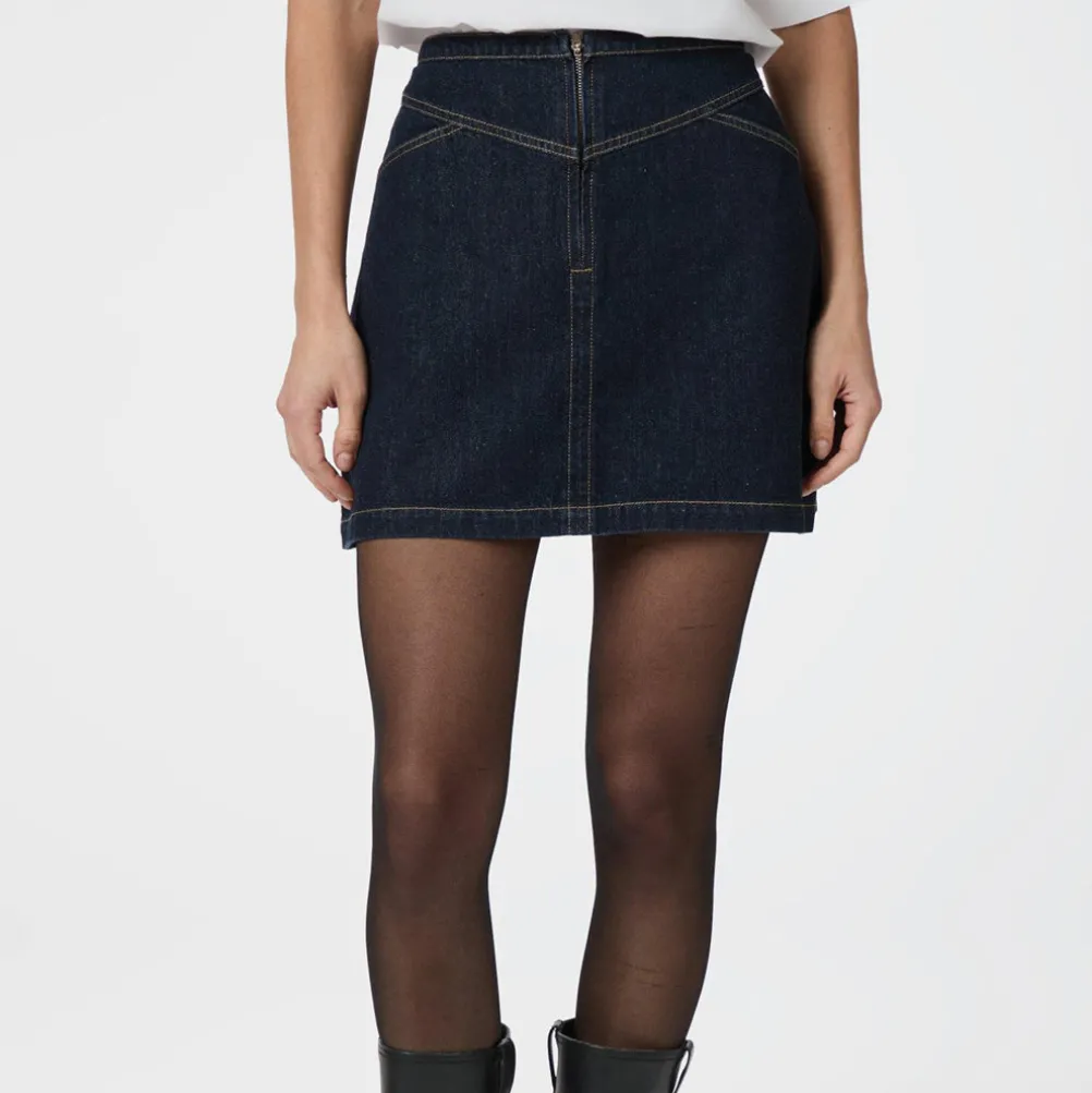 Cool kort nederdel fra Neo Noir lavet i en fin denimkvalitet. Med synlige syninger og lynlås foran. Med sidelommer.