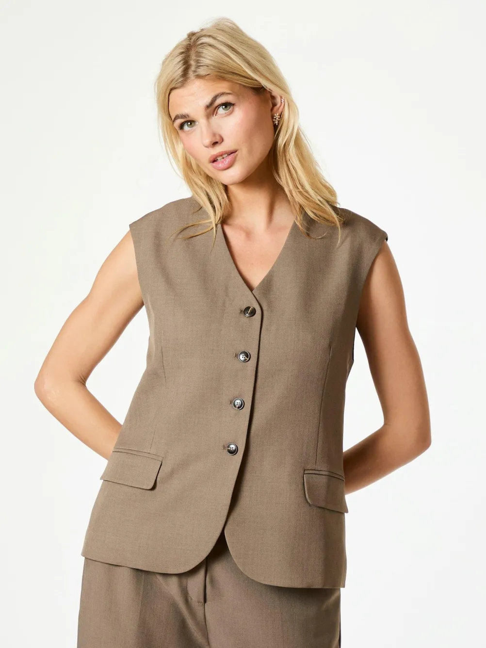 Flot vest fra Neo Noir med knaplukning og lommer. Lavet i et fint struktureret materiale.