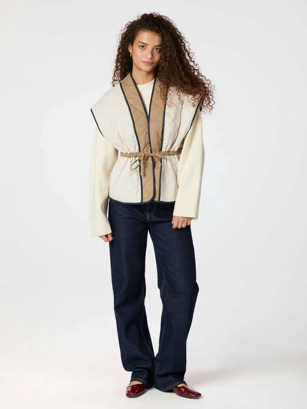 Flot quiltet vest fra Neo Noir med fine farvedetaljer. Med fint bindebånd i taljen.